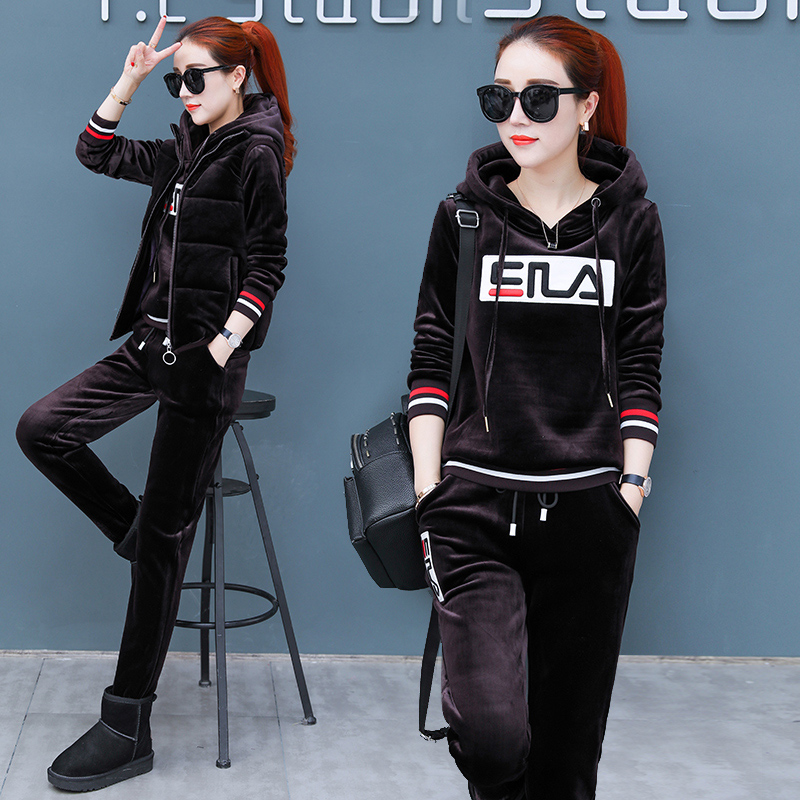 Tide Card CVY Sports Suit Women 2021 Autumn Winter New Gold Velvet Plus Suede Thickened Double Face Suede Three-like Suits