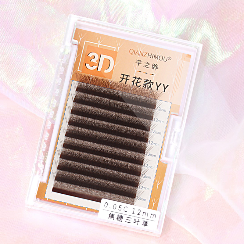 Caramel colour three leafy grass grafting eyelash 3d One second blooming ultra soft and not loose root deep brown curly eyelash natural