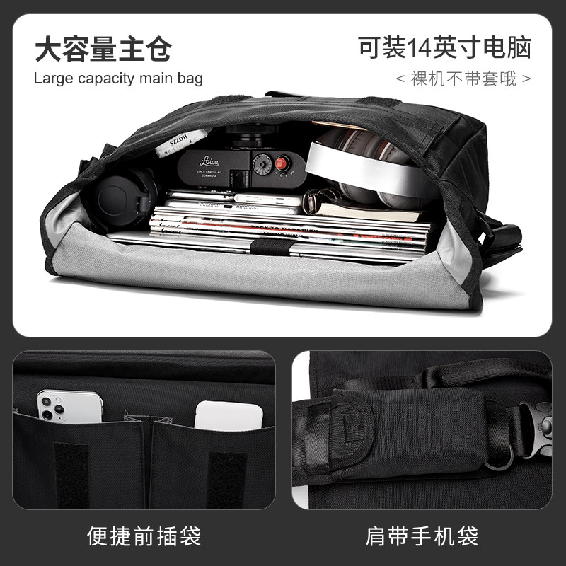 Zipped dark bag with mobile phone bag document bit computer inserted bag