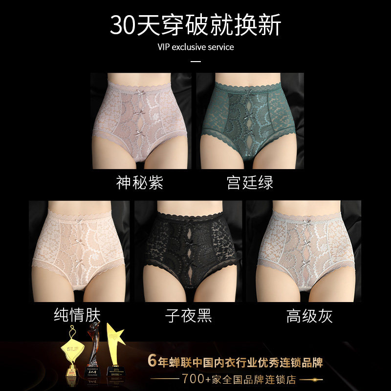 High-waisted panties women's lace perspective summer thin section sexy belly, buttocks, small belly, comfortable mood, seamless ladies