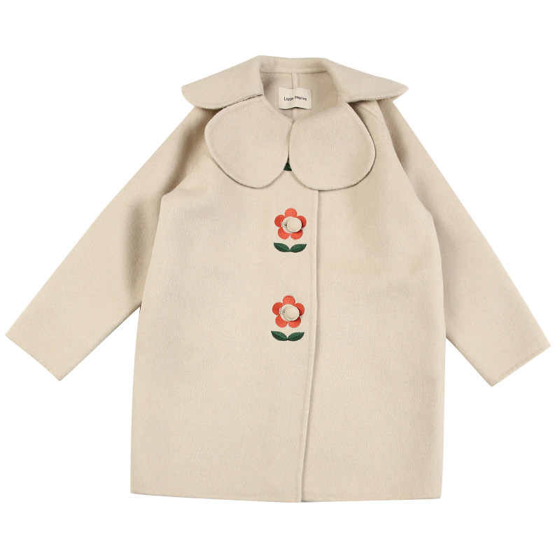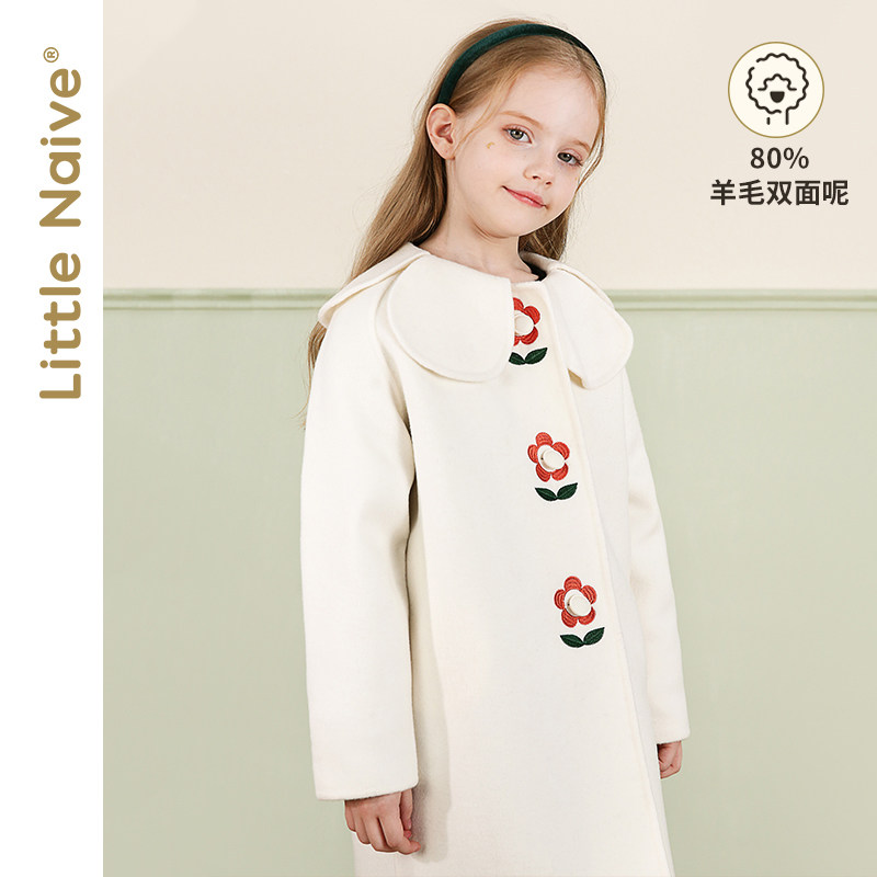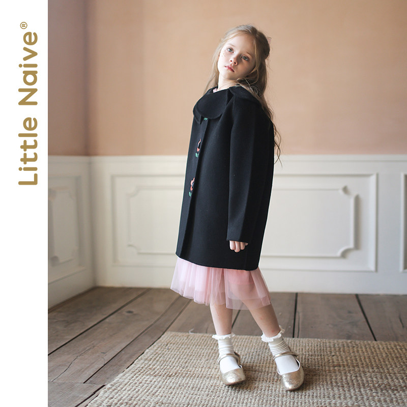 LittleNaive winter girls' mid-length coat black medium and large children's wool double-sided woolen coat parent-child outfit