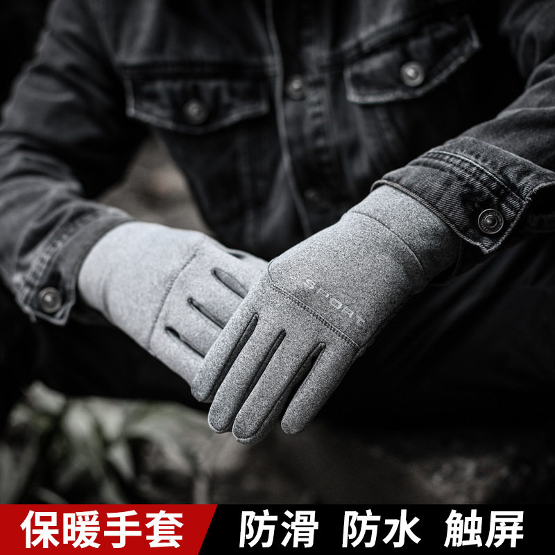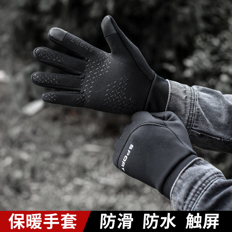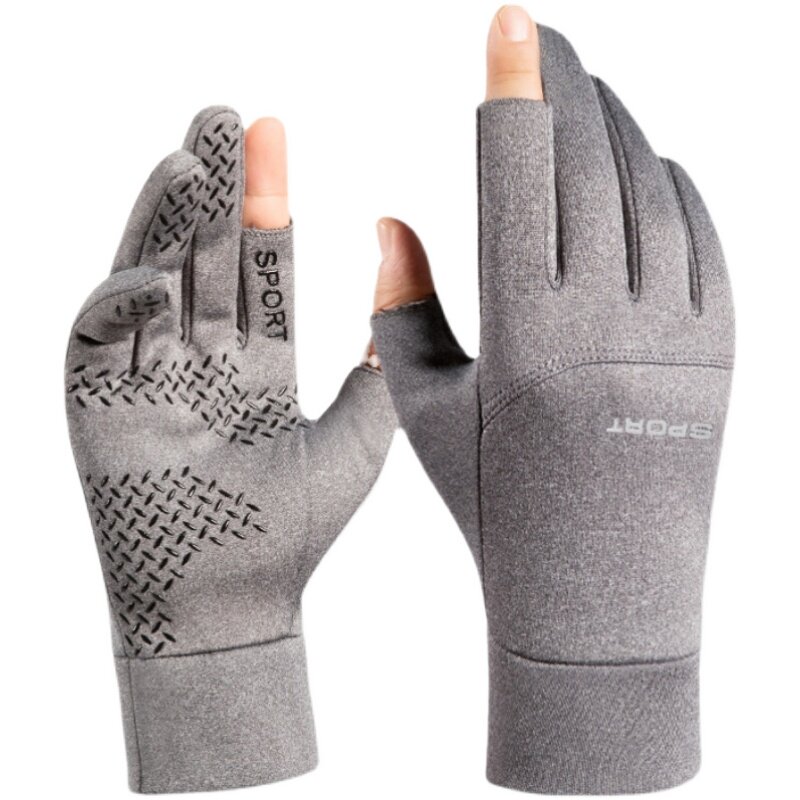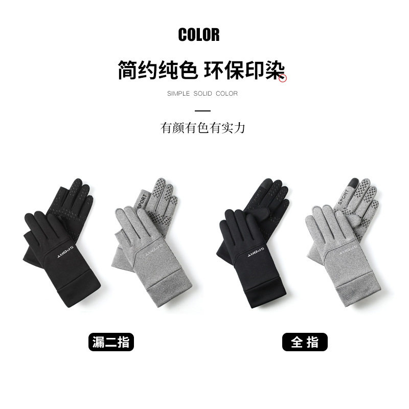 Male Gloves Winter Plus Suede Warm Dew Two Finger Gloves Outdoor Riding Running Drive Windproof Non-slip Gloves Female Winter
