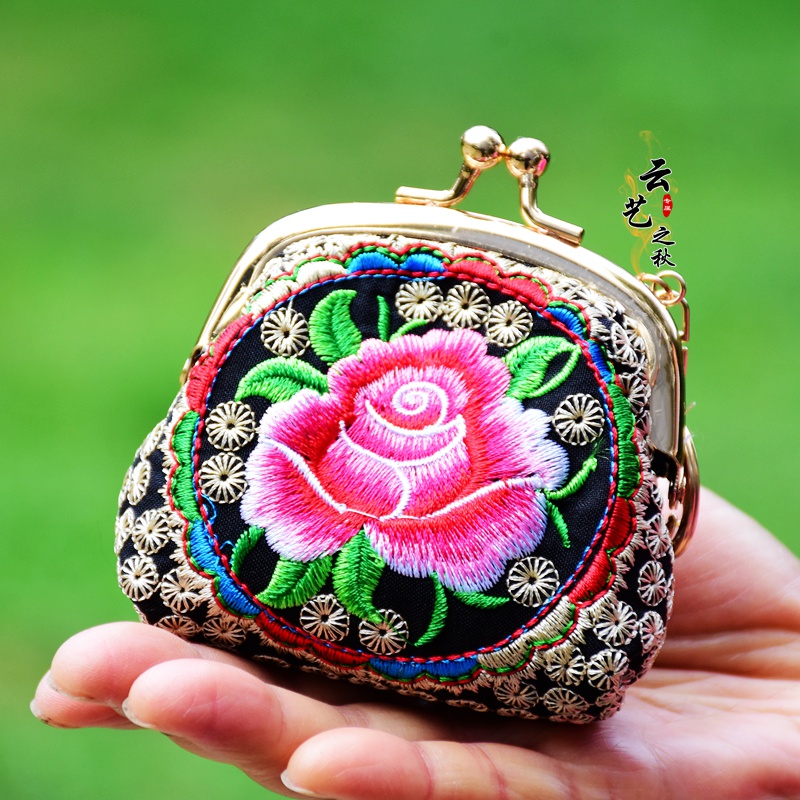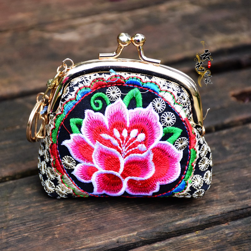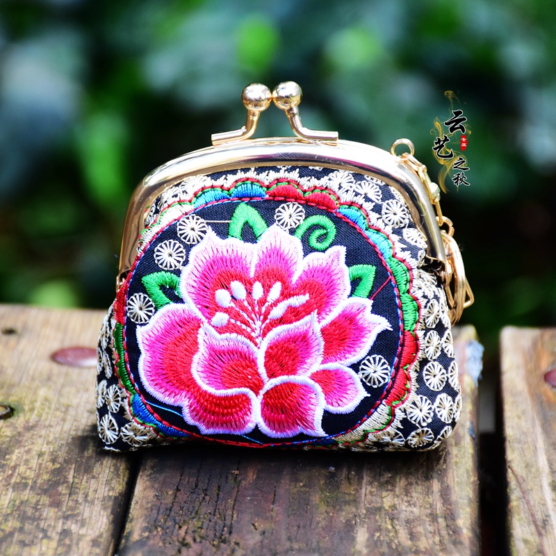 National Wind Cotton Linen Embroidery Flower Retro Buckle Creative Clip Mouth Coins Zero Money Bag Woman Mini Wallet Bag Gift Bag