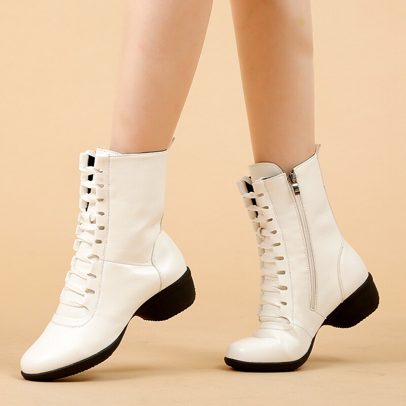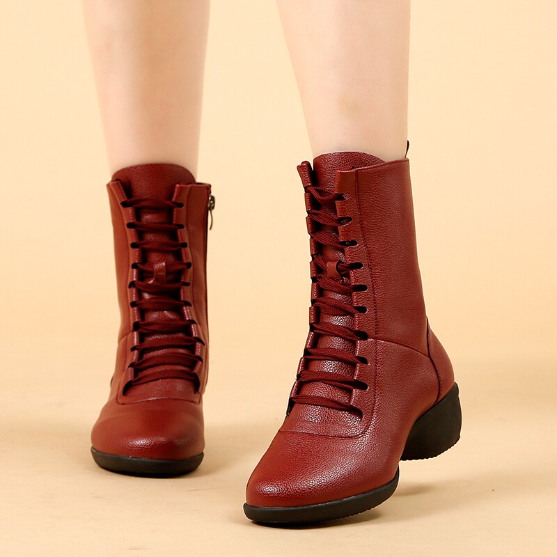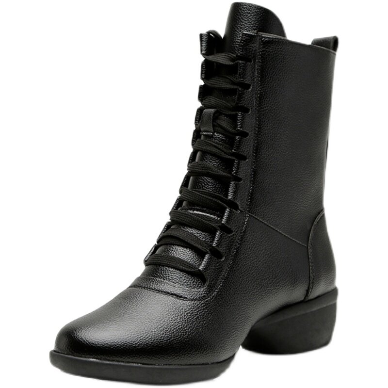 Women's high-top dance shoes with soft soles outerwear adult square dance shoes genuine leather plus velvet dance boots mid-heel sailor dance shoes