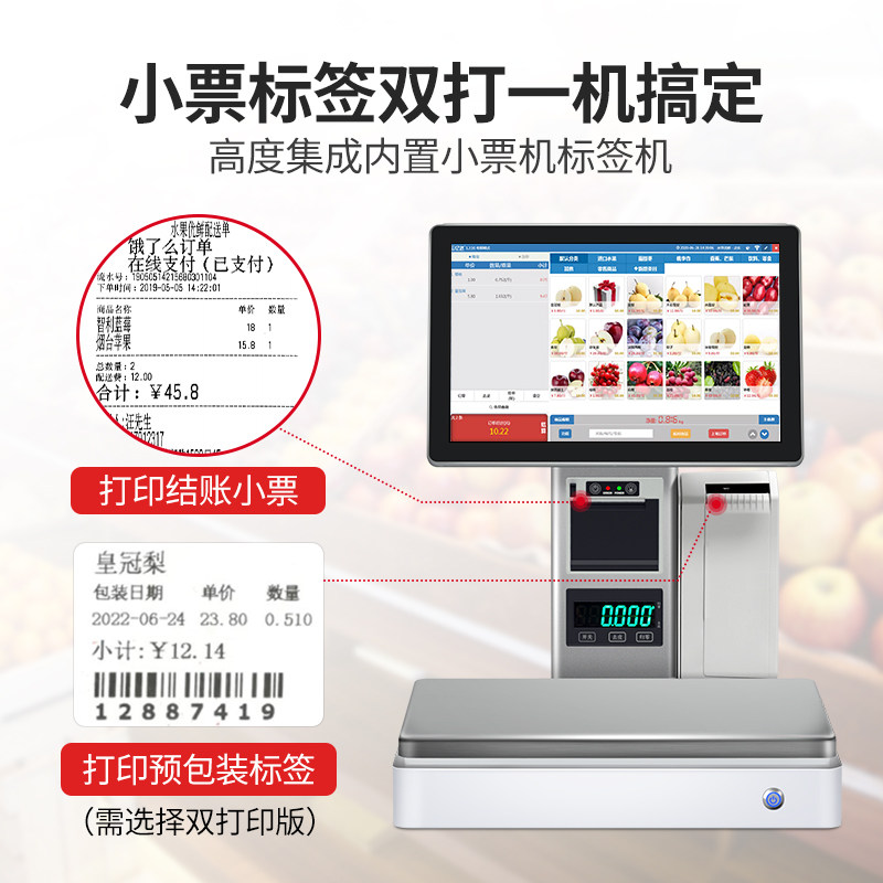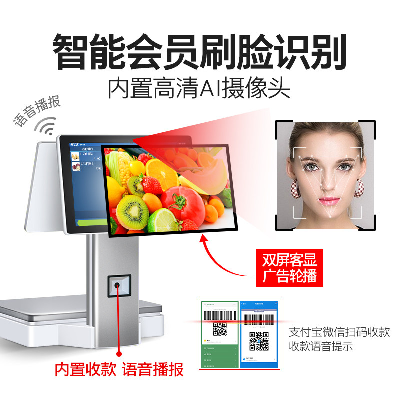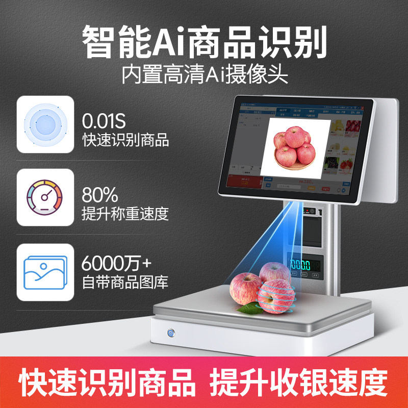 Ai identification weighing cash register All touch screen cash register fruit fresh supermarket snack cooked vegetable food fragrant pot Maocai supermarket electronic scale cash register scale