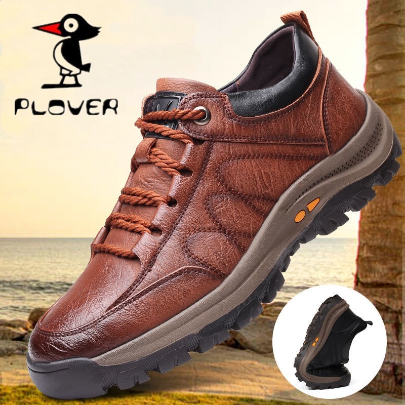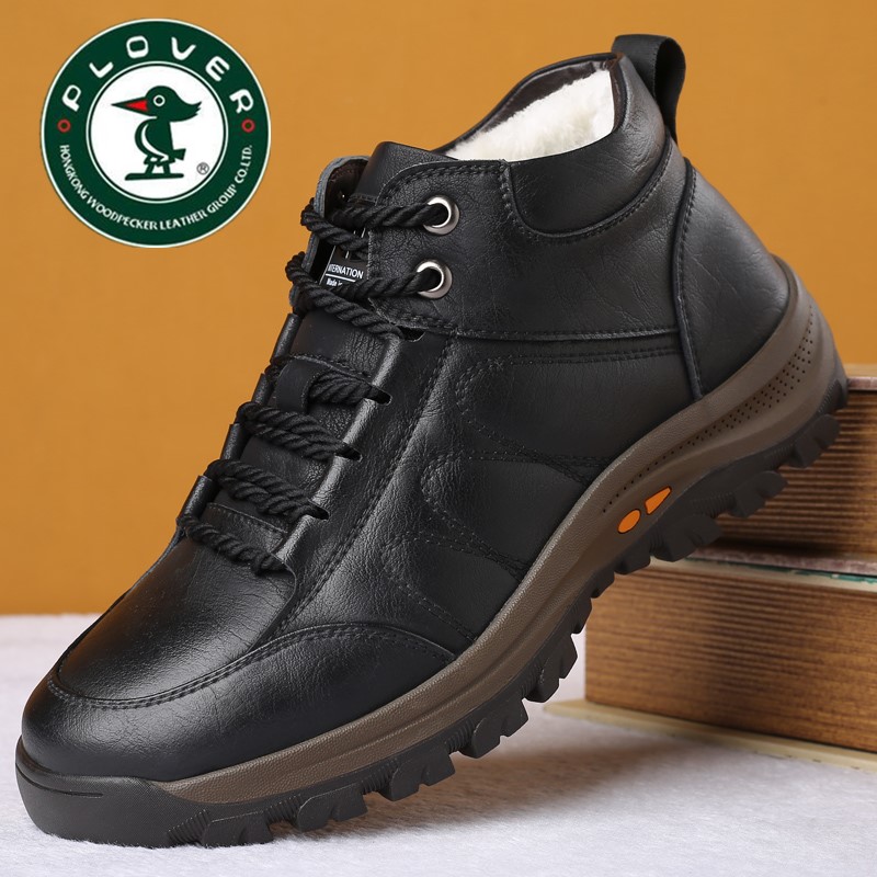 Woodpecker men's shoes autumn and winter leather shoes men's leather casual shoes men's non-slip hiking shoes plus velvet cotton shoes men's dad shoes