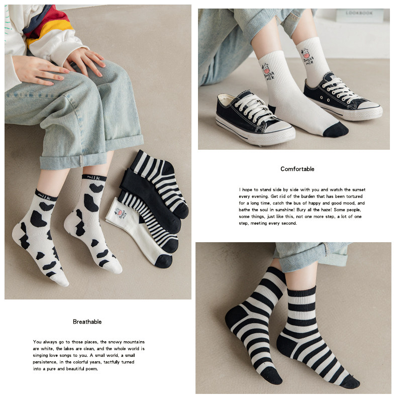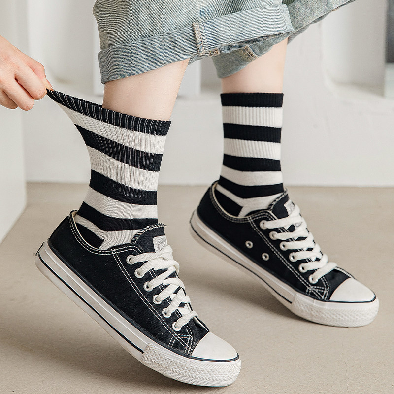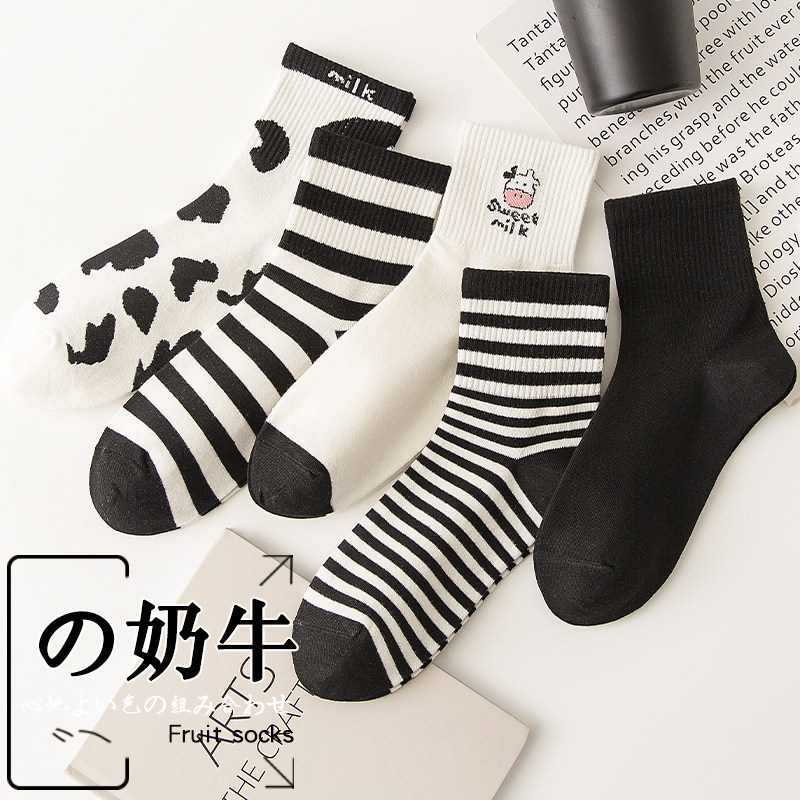 White socks women's spring, autumn and winter ins, middle tube cotton cute Japanese Net Red Black Sports High Socks wear