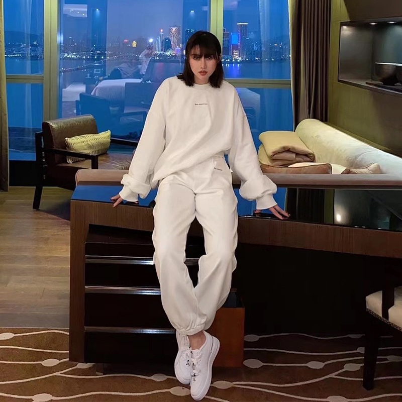 Winter women's clothing 2021 new sports suit temperament Korean version plus velvet clothing casual fashion Two sets