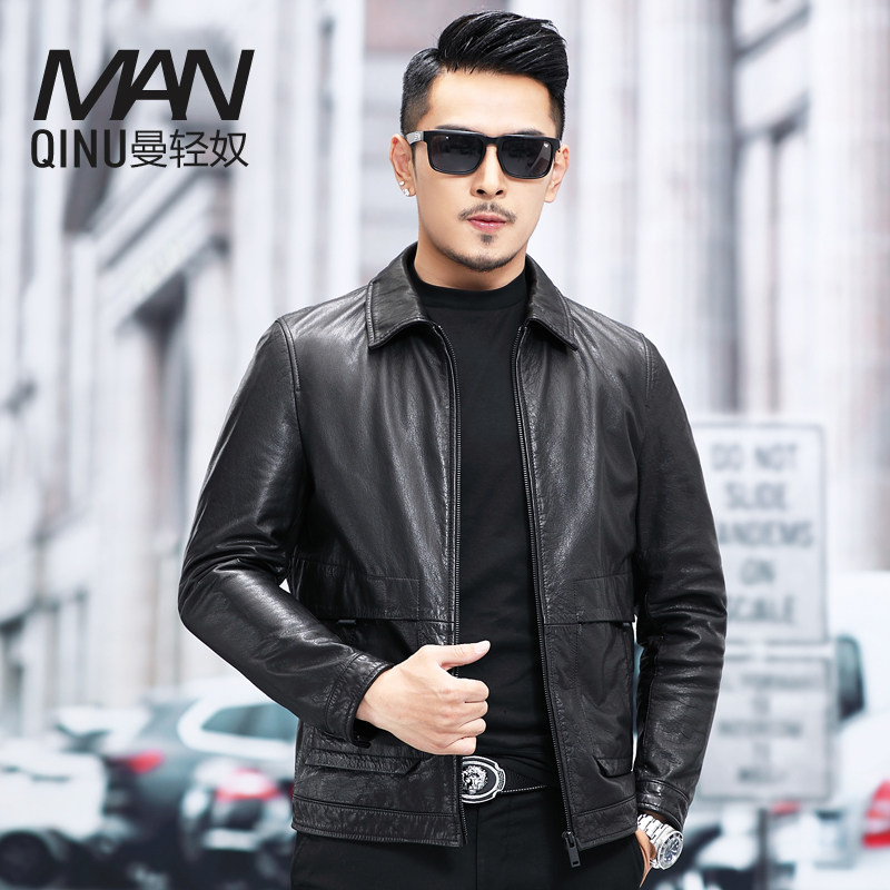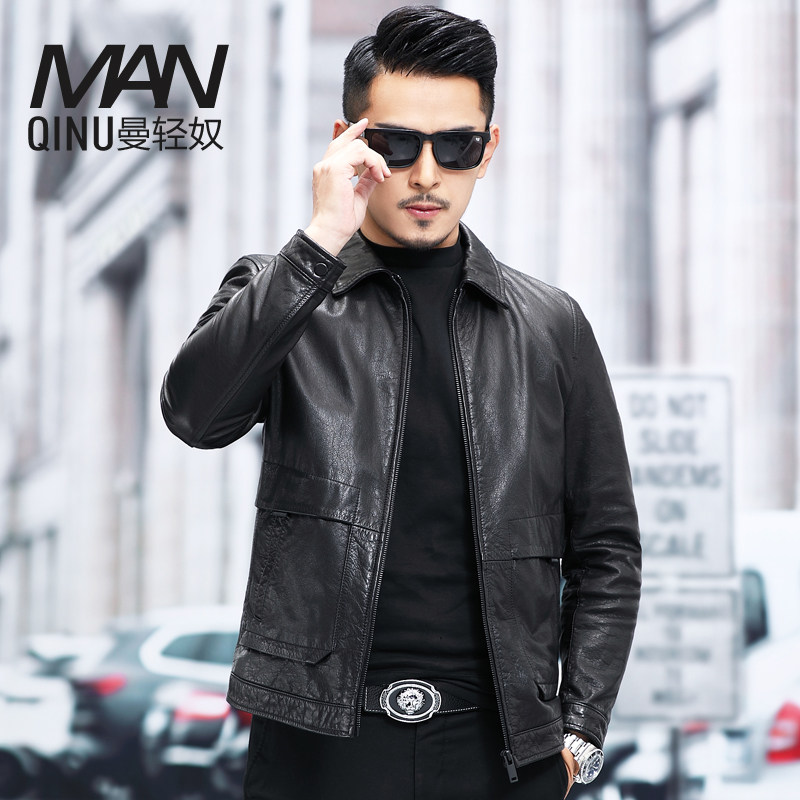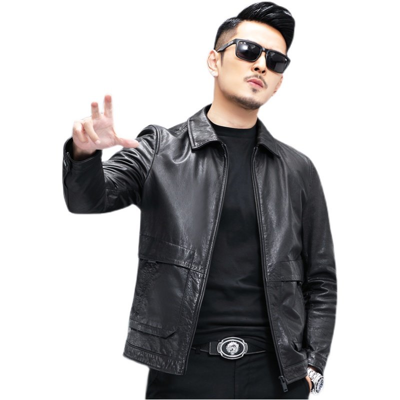 Autumn new leather leather jacket men's oil wax head layer cowhide lapel thin leather jacket short casual single-layer leather jacket