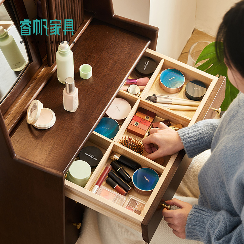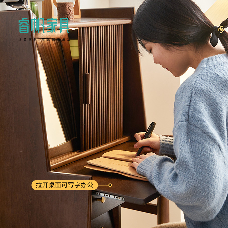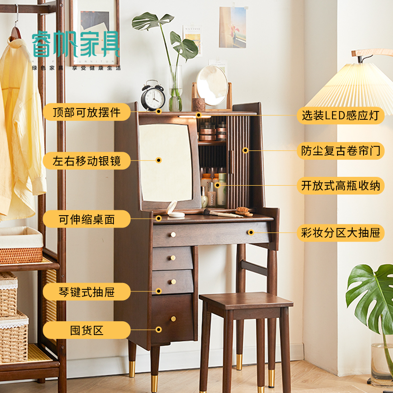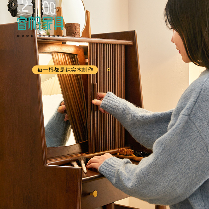 Nordic Solid Wood Makeup Desk Small Family Type Bedroom Ins Wind Mesh Red Makeup Table Containing Cabinet Integrated Light Extravagant Little Table