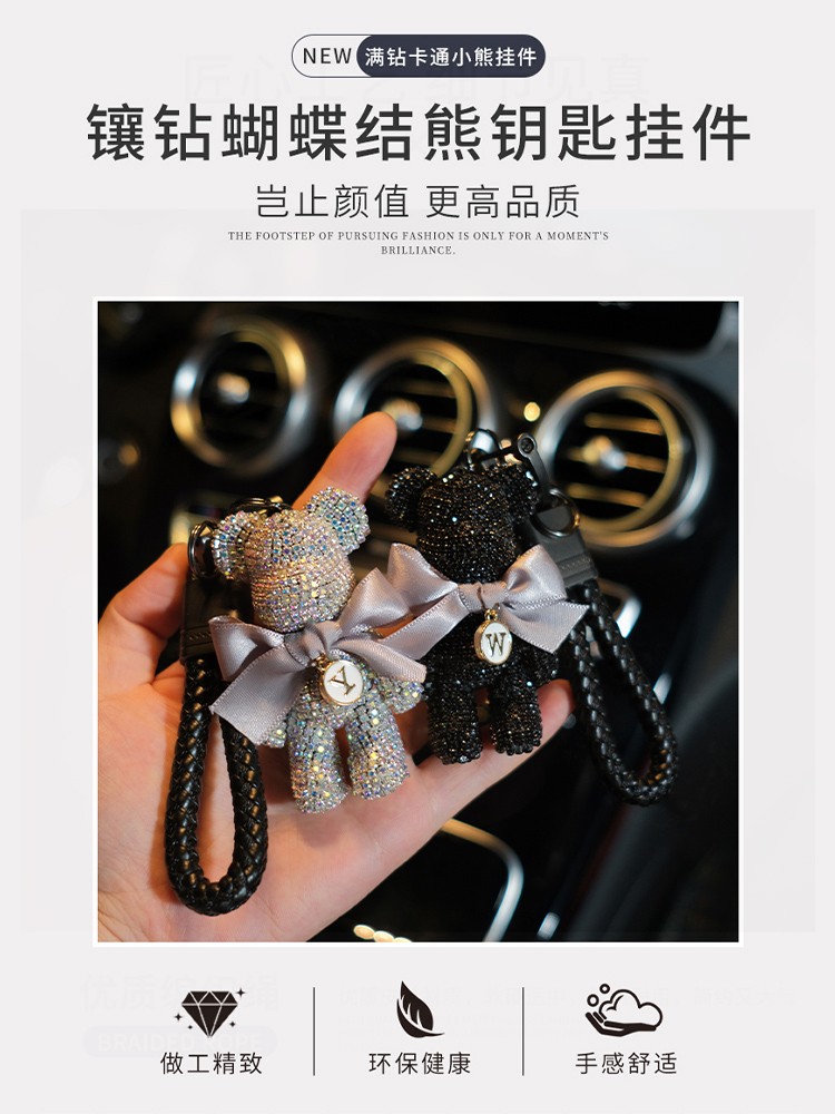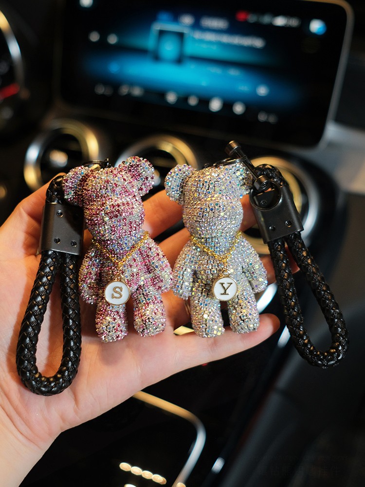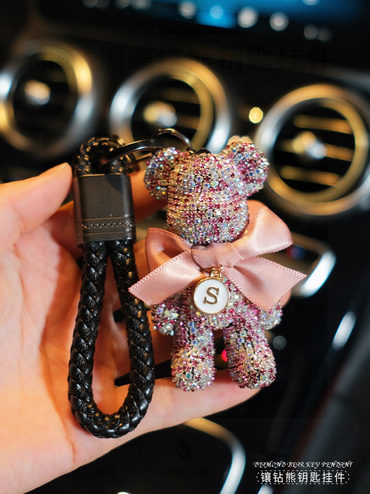 Suitable for Mercedes BMW Audi car key chain pendant violent bear high-end diamond-encrusted chain ring ring lanyard pendant female