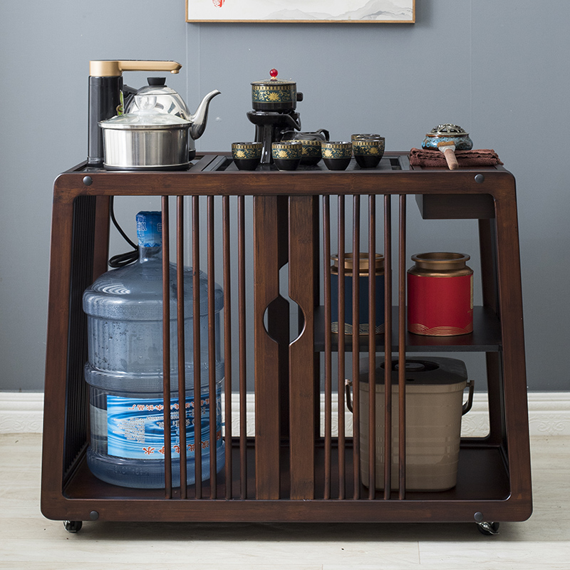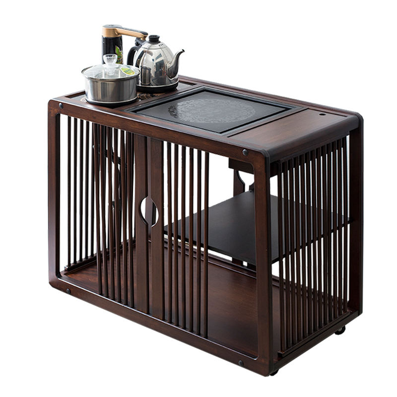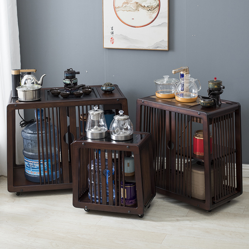 Mobile tea table home small tea table side cabinet tea cart solid wood balcony tea table boiling kettle integrated tea water cabinet