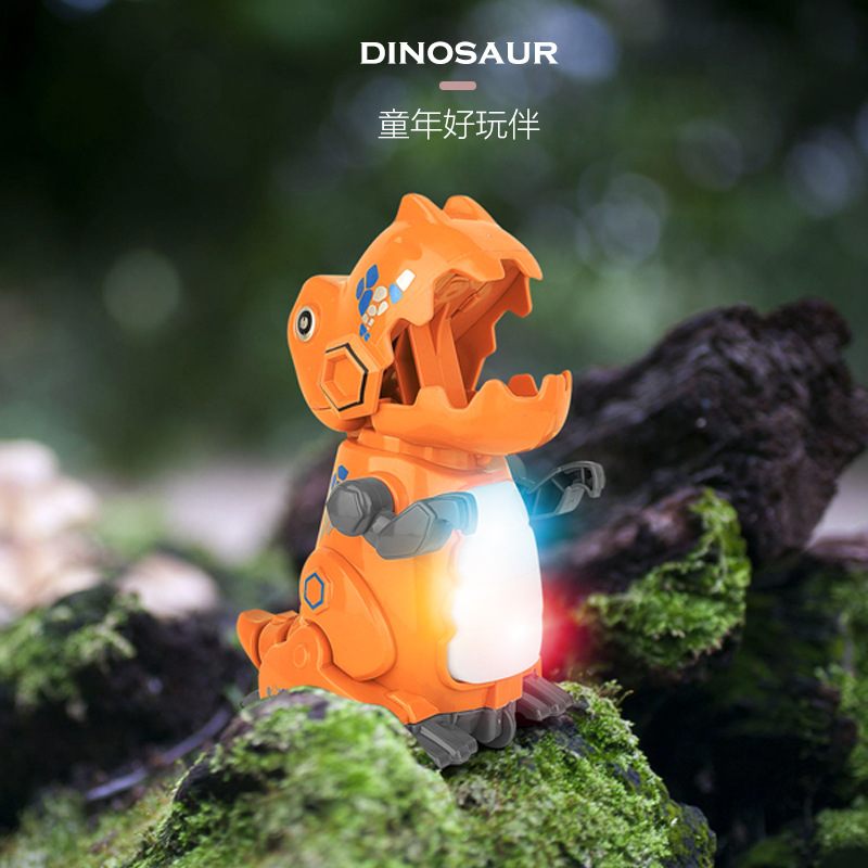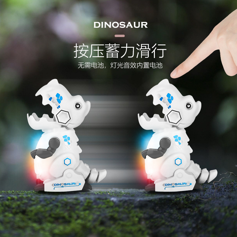 Children press the mechanical dinosaur inertial pull back toy light music joint movable baby crawling puzzle boy