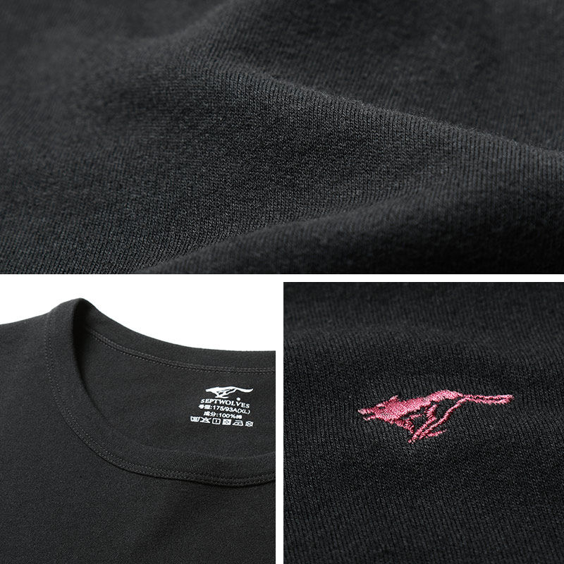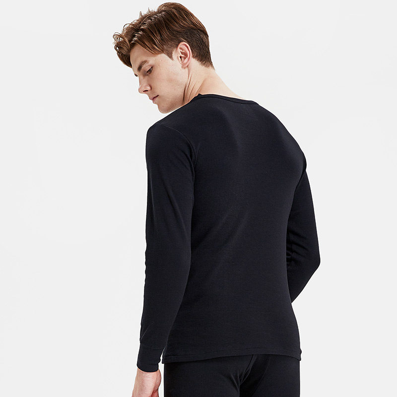Seven Wolves Men's Warm Underwear Antibacterial Pure Cotton Suit Youth Slats Undercoat Men's Pure Color Round Collar Autumn Clothes Sanitary Pants