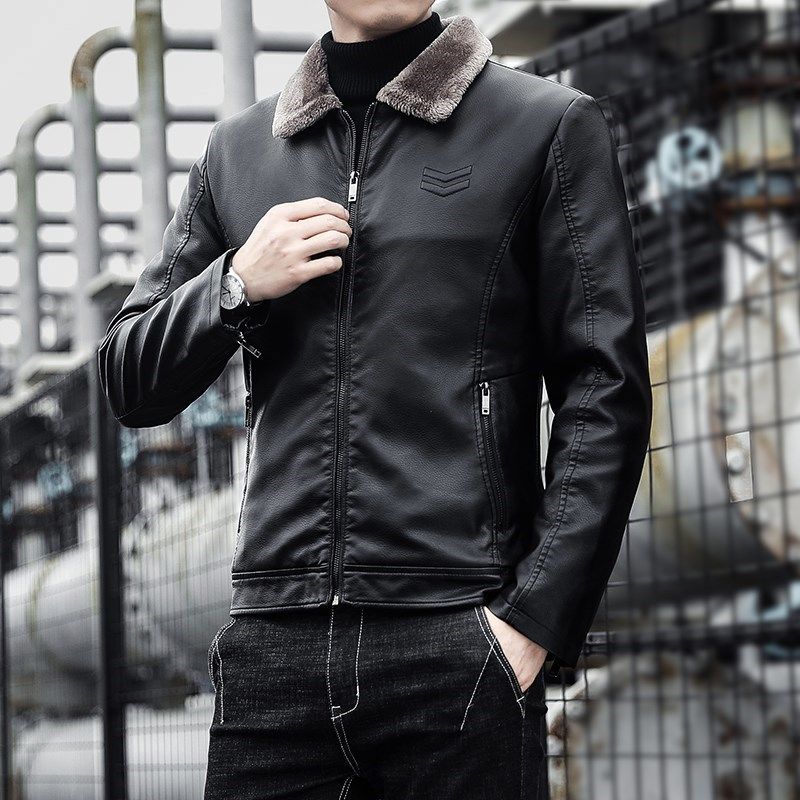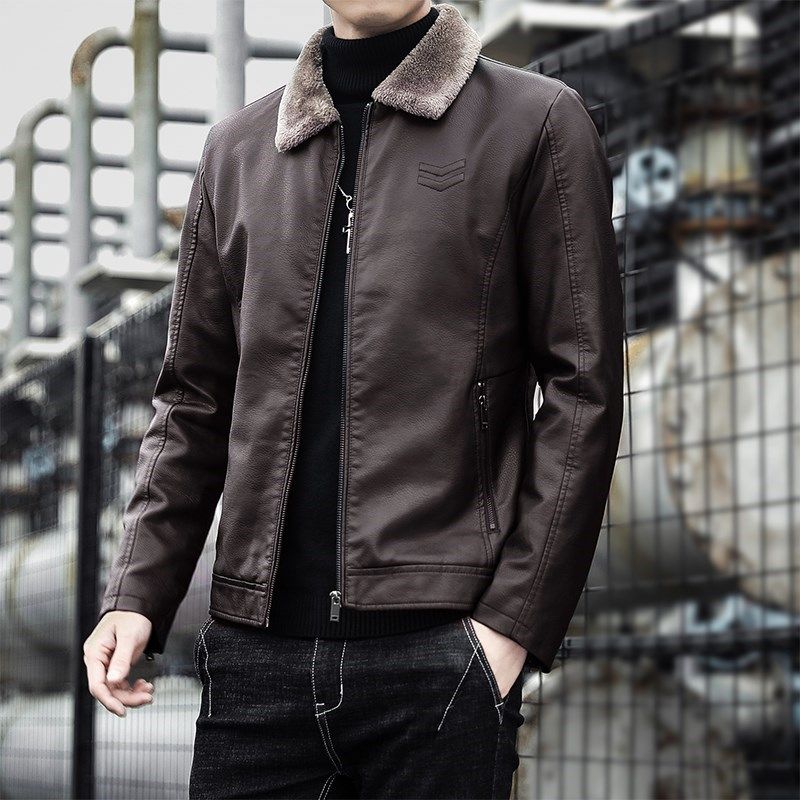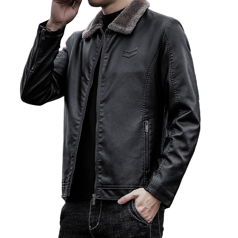 Tide-branded leather clothes men business leisure short jacket young locomotive clothes pilots plus thickening warm coat men