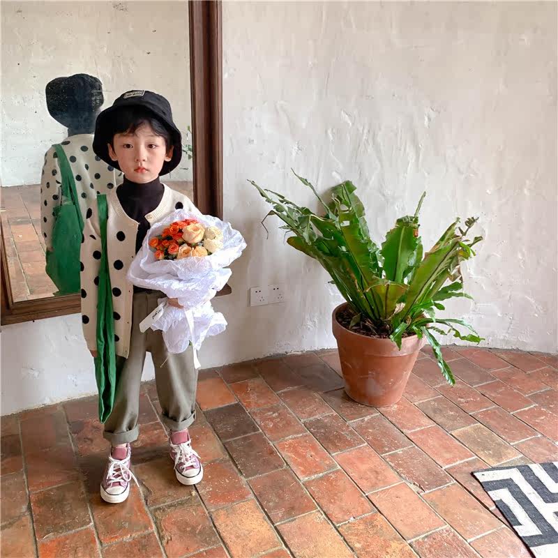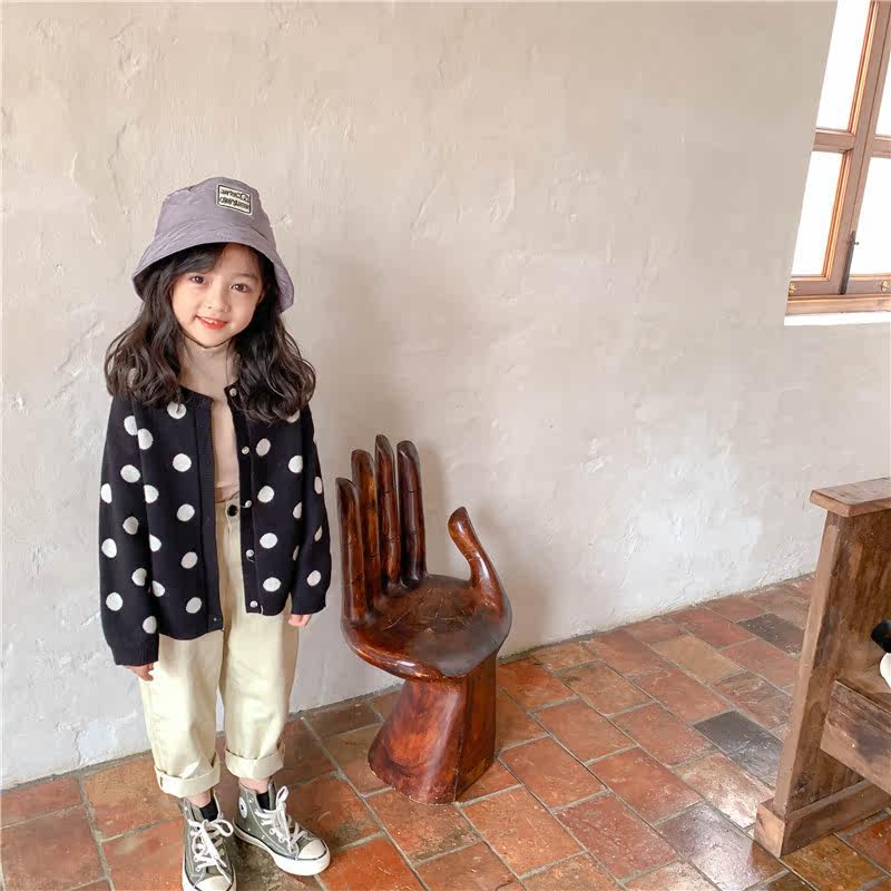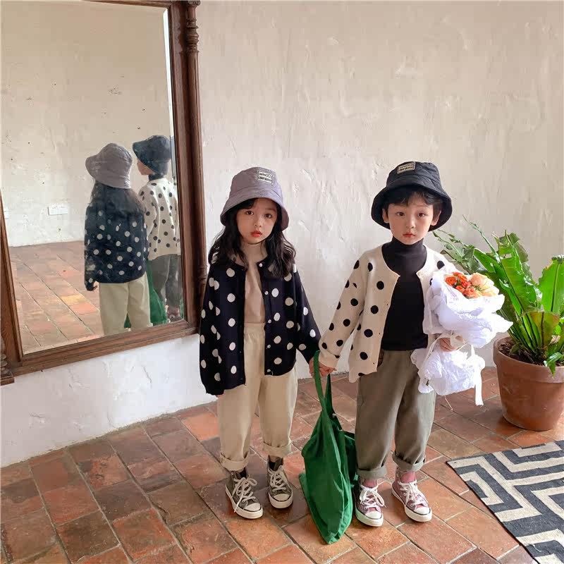 Children knit cardiovert spring autumn 2021 male and female child polo dot sweater coat jacket Korean version baby brother and sister blouse