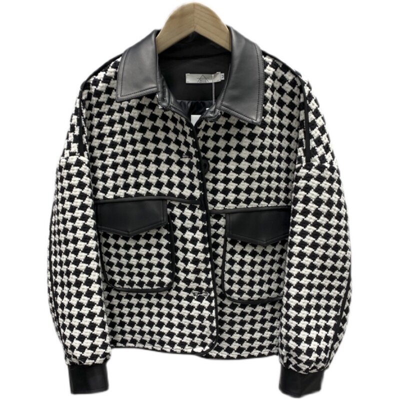 Fashion Houndstooth Small Fragrance Short Jacket Women's 2022 Early Autumn New Temperament Goddess Fan Reduced Age Western Style Top