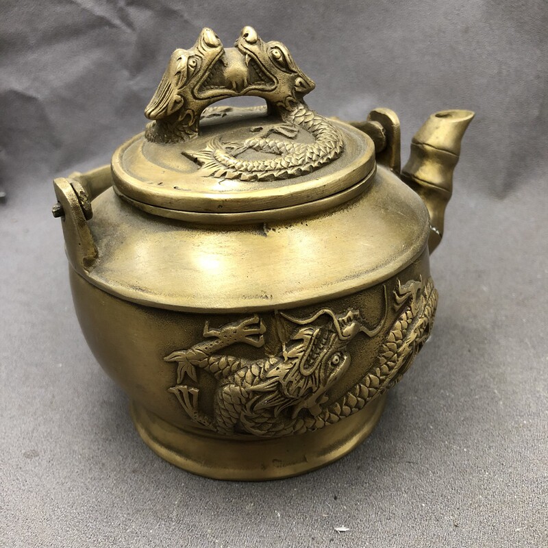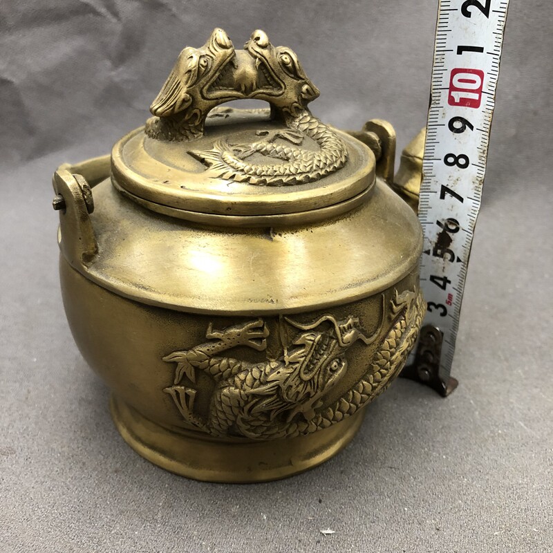 Antique Miscellaneous copper pot wine bottle kettle home craft decoration Double Dragon pot lifting beam pot retro copper