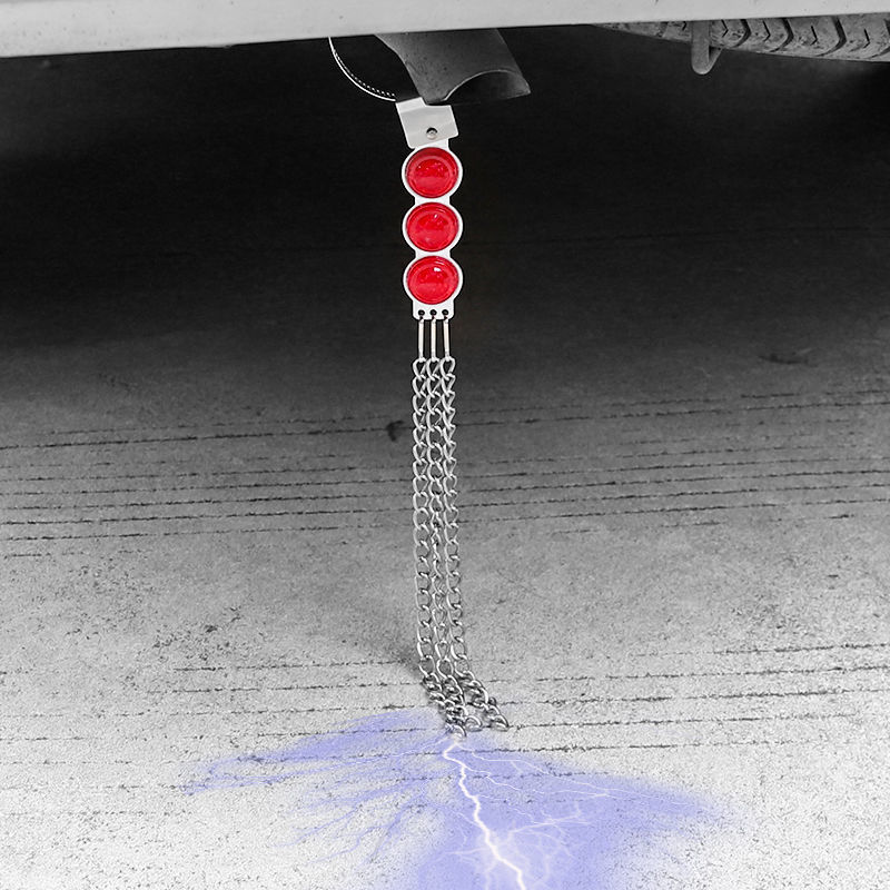 Electrostatic towing to the car with an antistatic eliminator for releasing the deviner towed place with ground strip for car