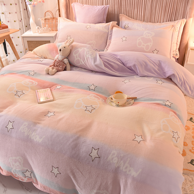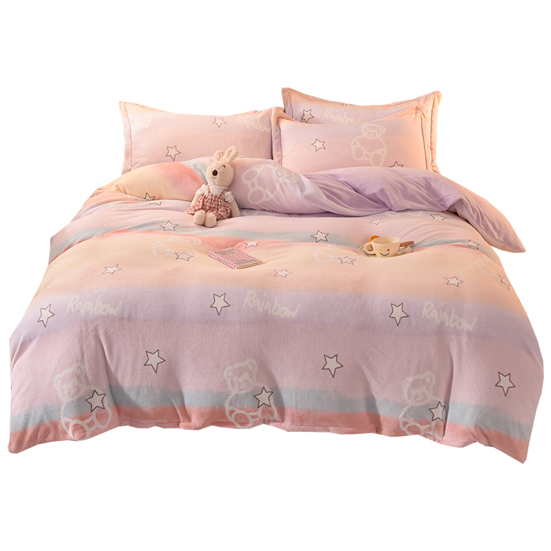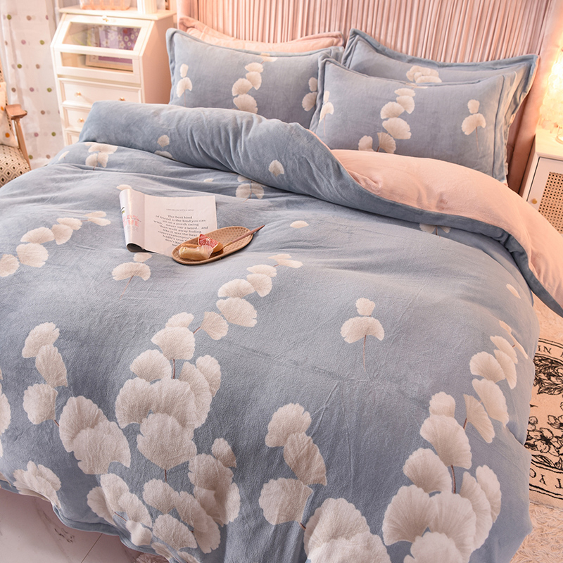 Fuanna Single Piece Covered With Hood Four Pieces Winter Coral Suede Winter Milk Suede Thickened Double-sided Suede Plus Flannel Flannel