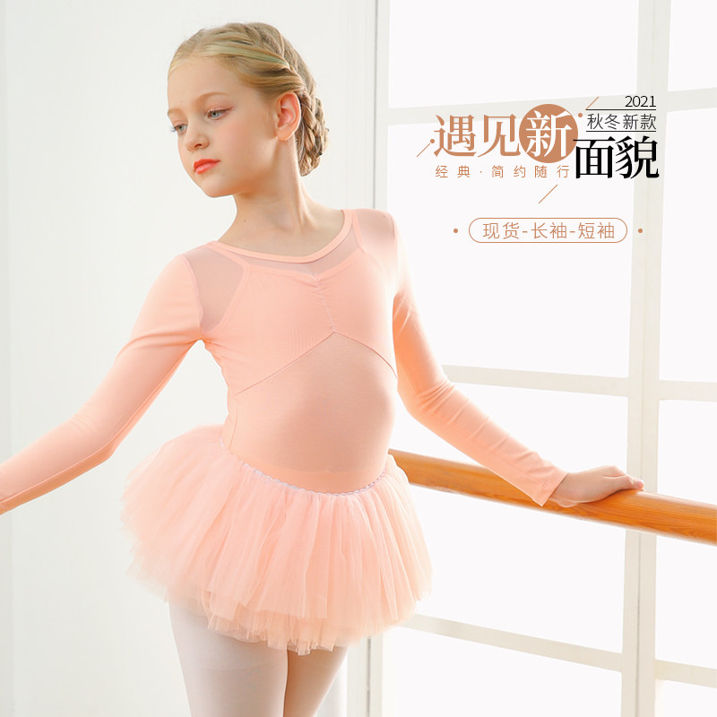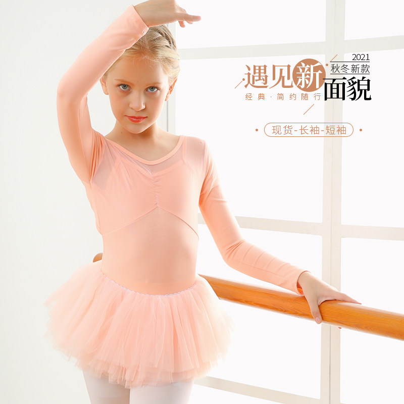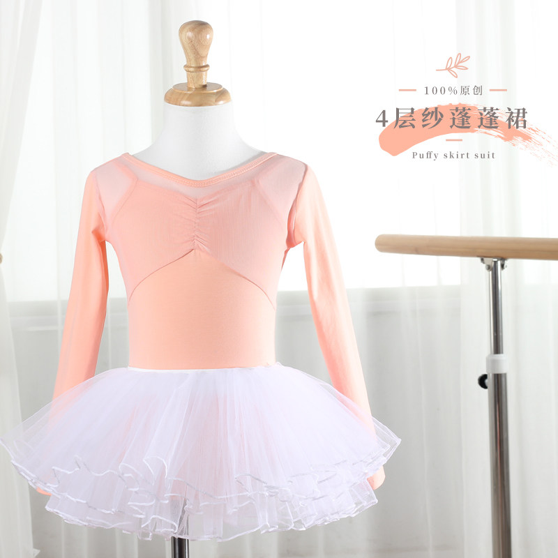 Dance suit Children's autumn and winter practice Girl Long Sleeve Ballerina Fluffy Skirt Toddler Dancer Dance Dress Suit