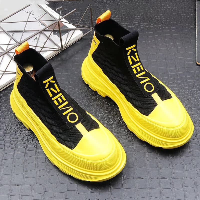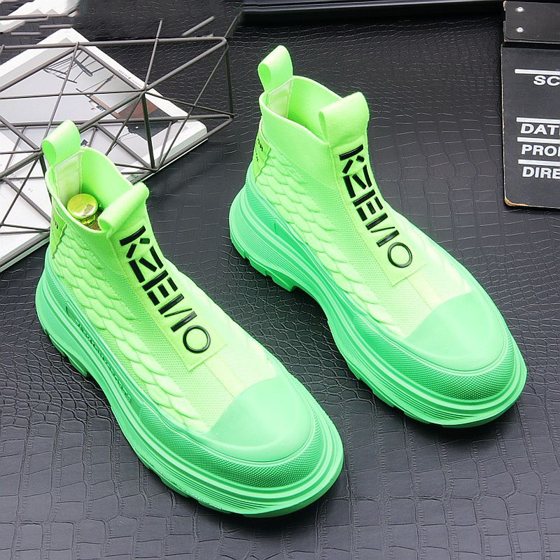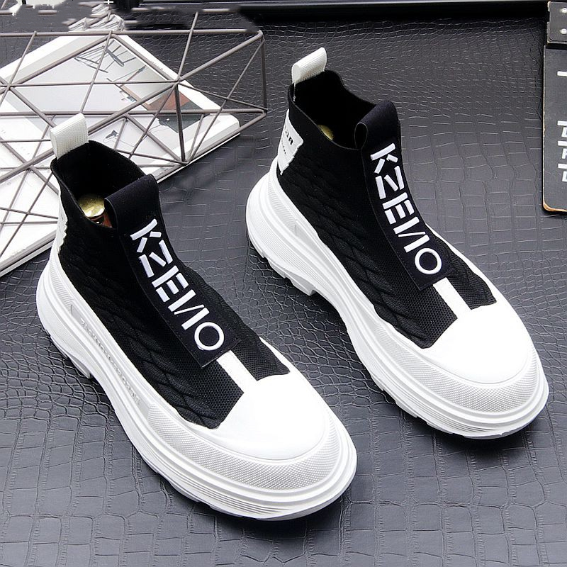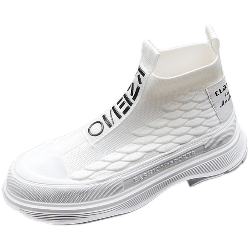 Summer flying woven mesh fish scale pattern socks shoes men's high tube muffin bottom trend small white shoes men's high tube fashion short boots