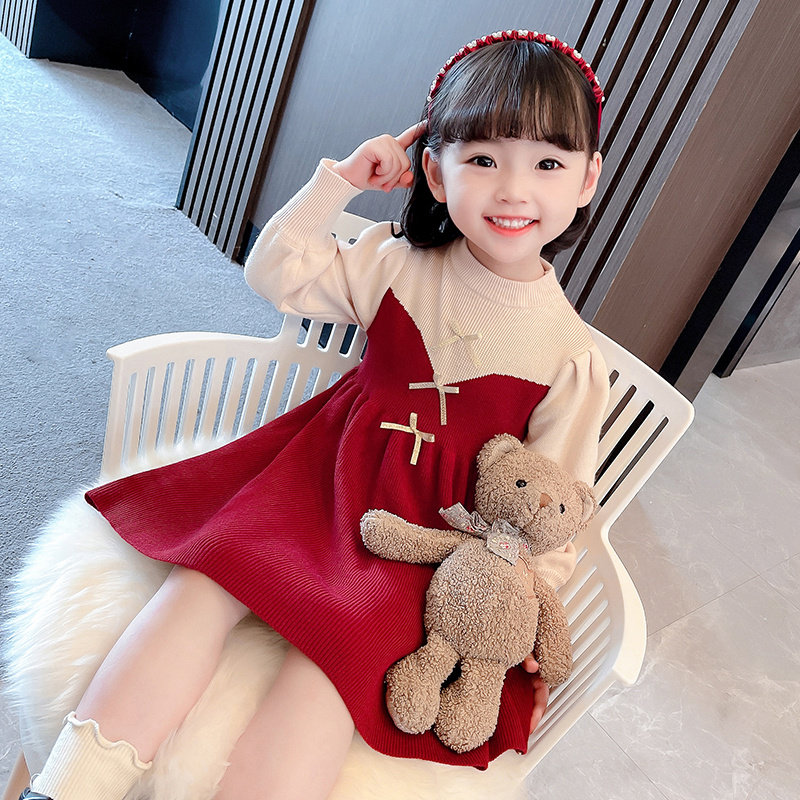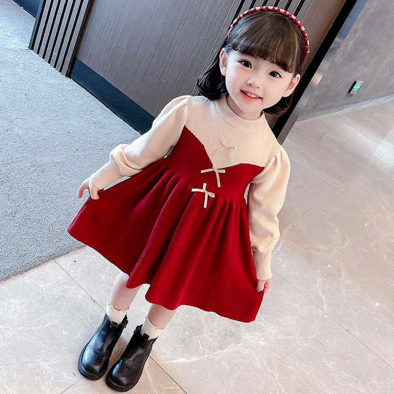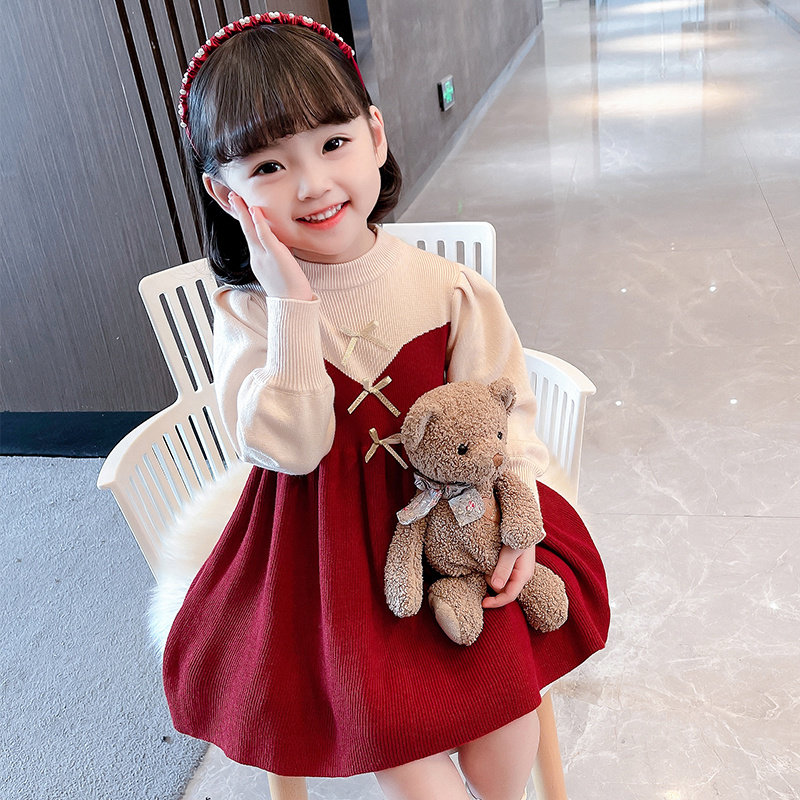 Girls dress Western style autumn and winter fashionable knitted princess skirt children's Korean version three-year-old baby girl birthday skirt