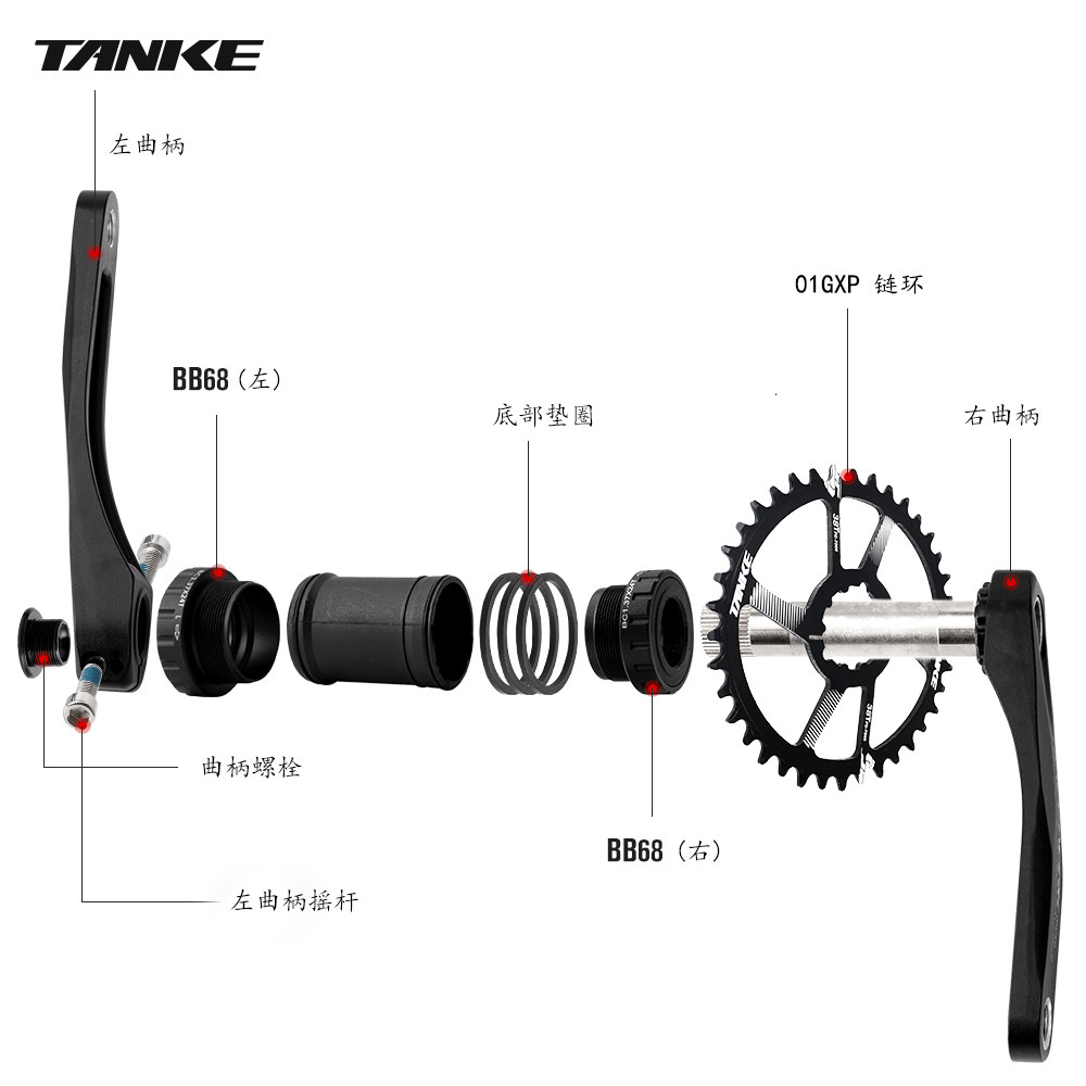Carbon Passenger TANKE Climbing Bike Bike Single Disc GXP Crank MTB Aluminum Alloy Hollow Integrated Large Fluted Disc Accessories