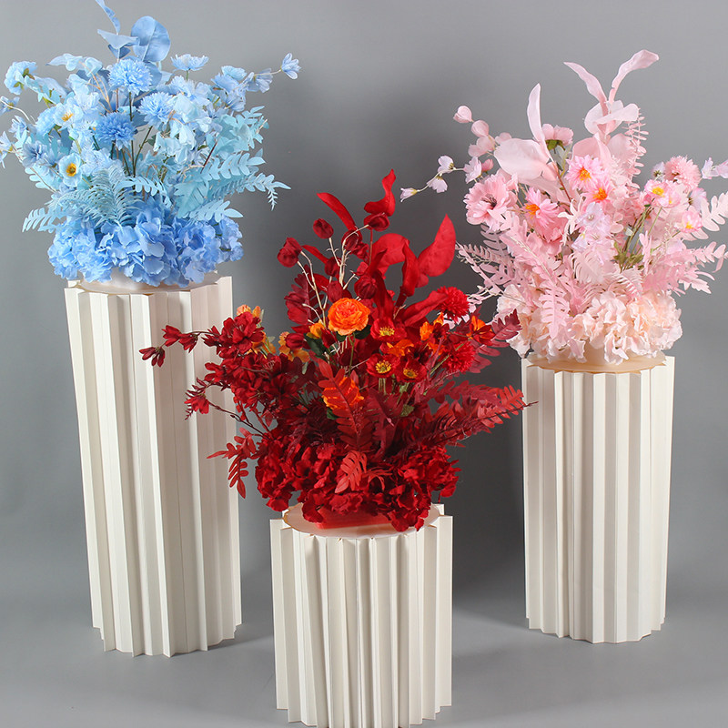 Red is champagne, haze, blue, orange, pink, white and green forest, 40cm high cylinder (30cm in diameter), 60cm high cylinder (30cm in diameter), 80cm high cylinder (