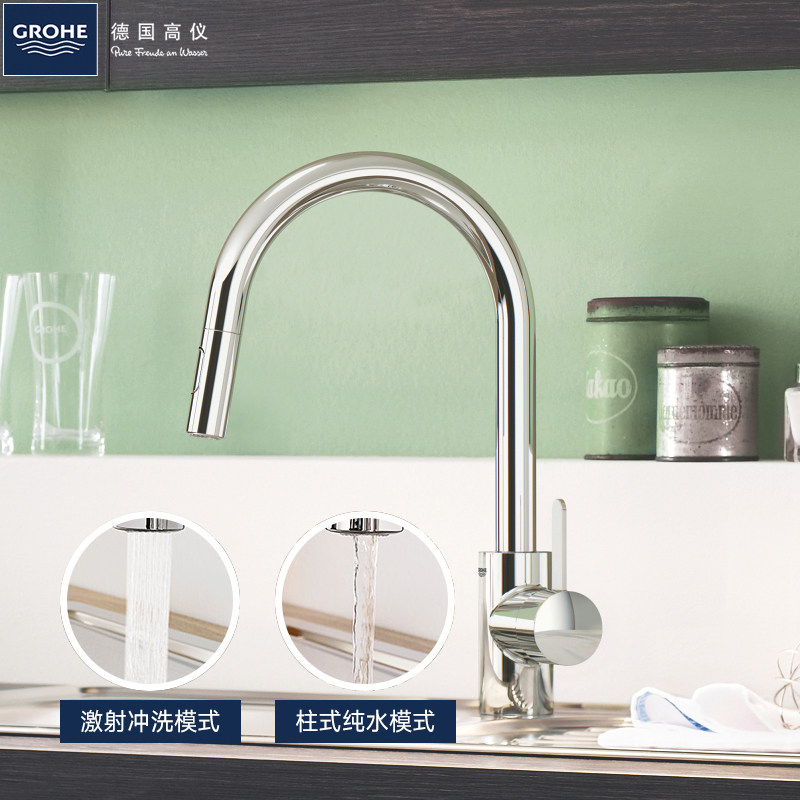 GROHE kitchen faucet two ways to extract water can pull the rotating hot and cold water faucet