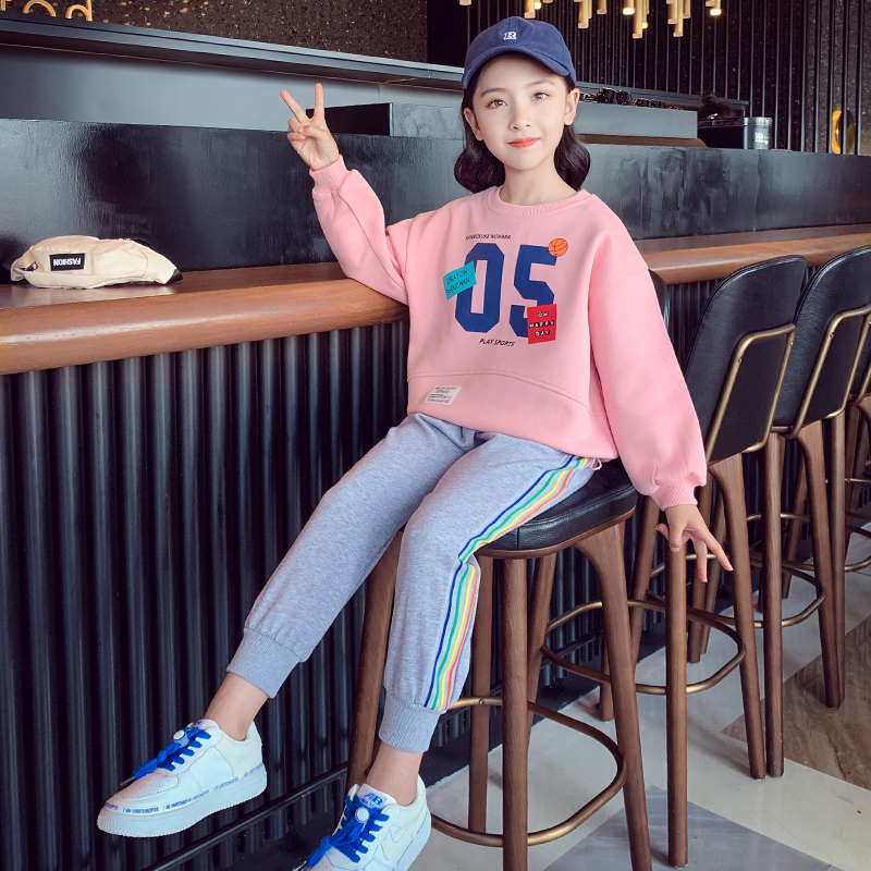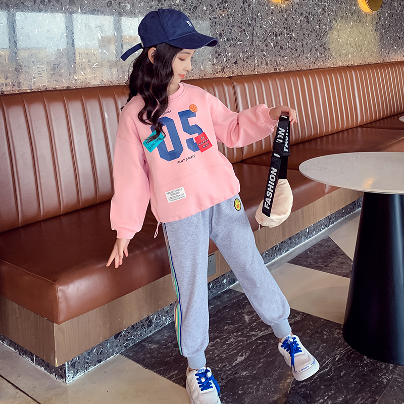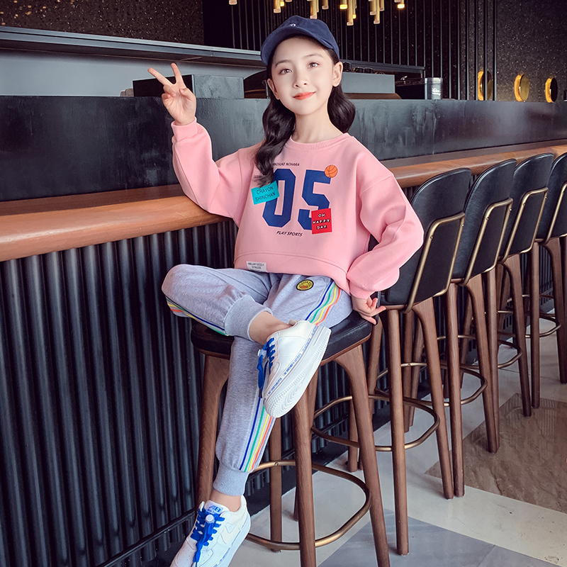 Net Red Girl suit 2021 new foreign style children's clothes little girl sweater pants spring and autumn children's two sets
