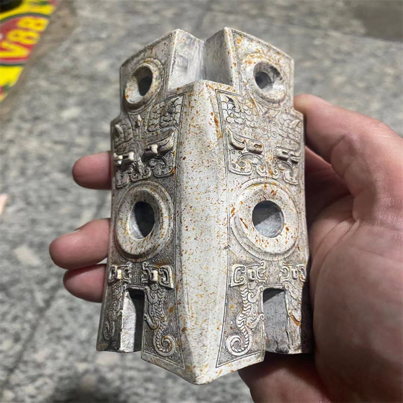 Double Dragon Chicken Bone White Liangyu Ancient Play Jade jade Jade Imitation old jade imitation old stone tool to put together a piece of dragon face jade brown jade ornament