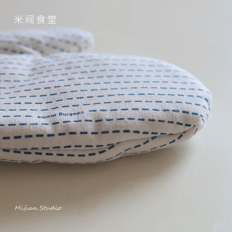 Rice canteen Kitchen anti-scalding gloves ins thick and good looking cotton and linen microwave oven gloves oven insulation baking