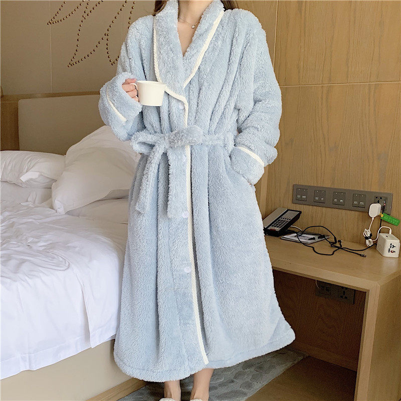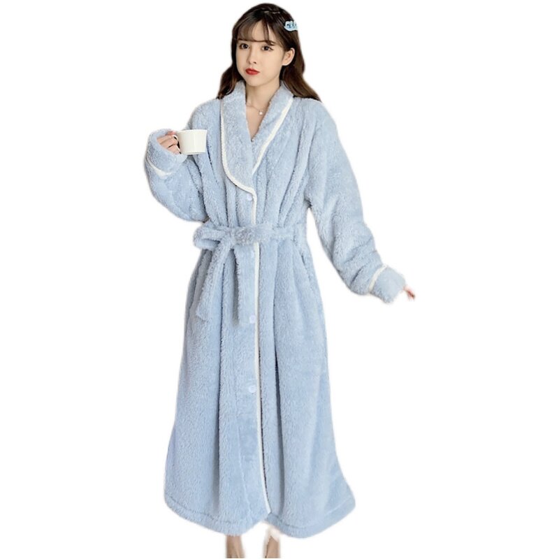 2021 new autumn and winter flannel pajamas women's cardigan nightgown coat thickened coral fleece bathrobe can be worn outside