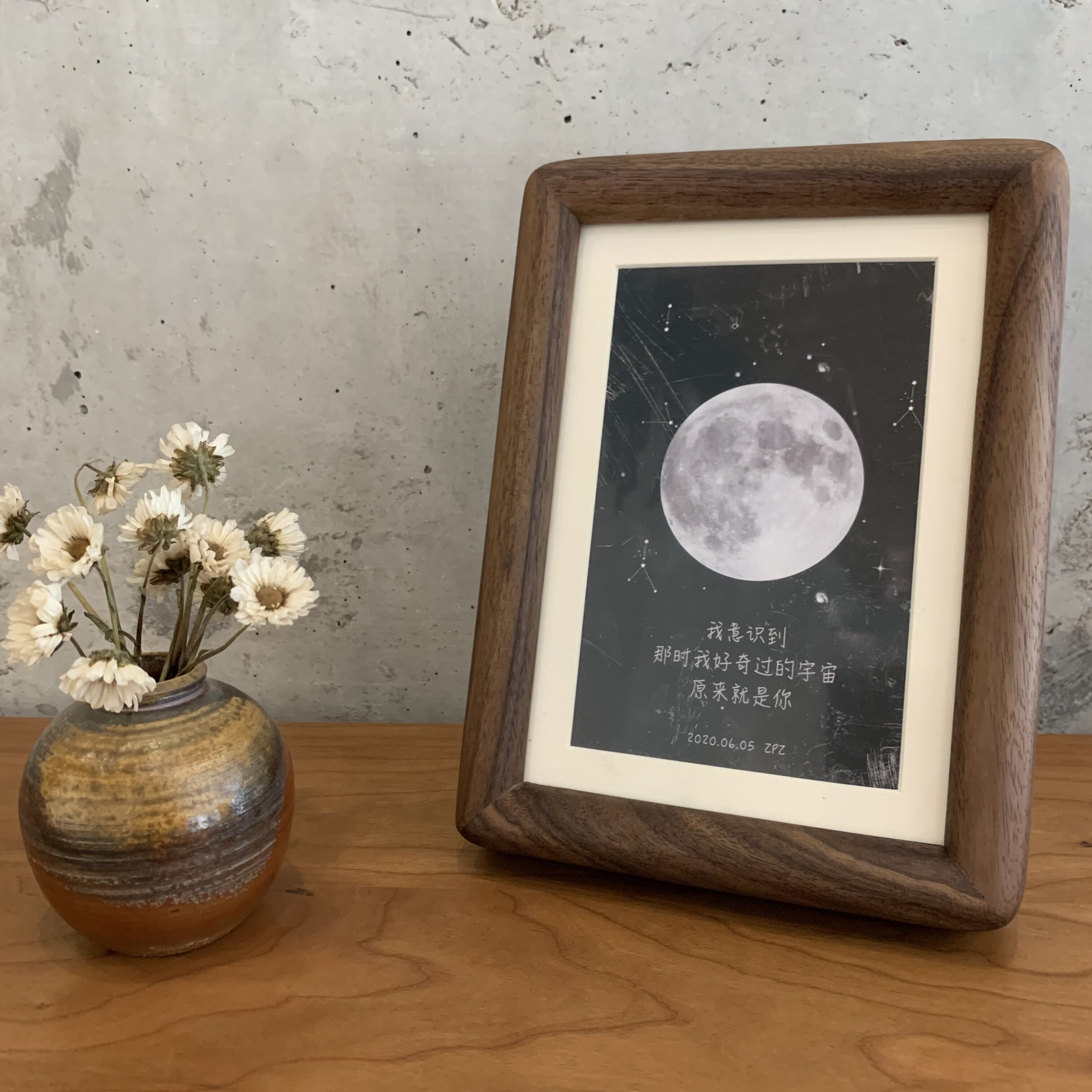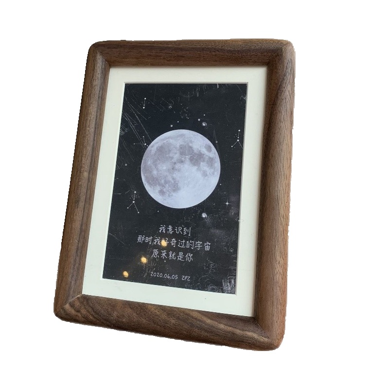 Creative rounded black walnut photo frame table 6 inches 7 inches couple bedroom solid wood ornaments wash photos to make a picture frame - Taobao