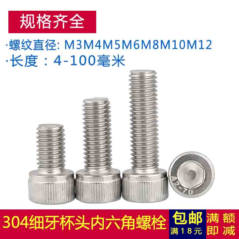 M3M4M5M6M8 Small dental hexagonal screw DIN912 Cylindrical heads tooth screw stainless steel 304