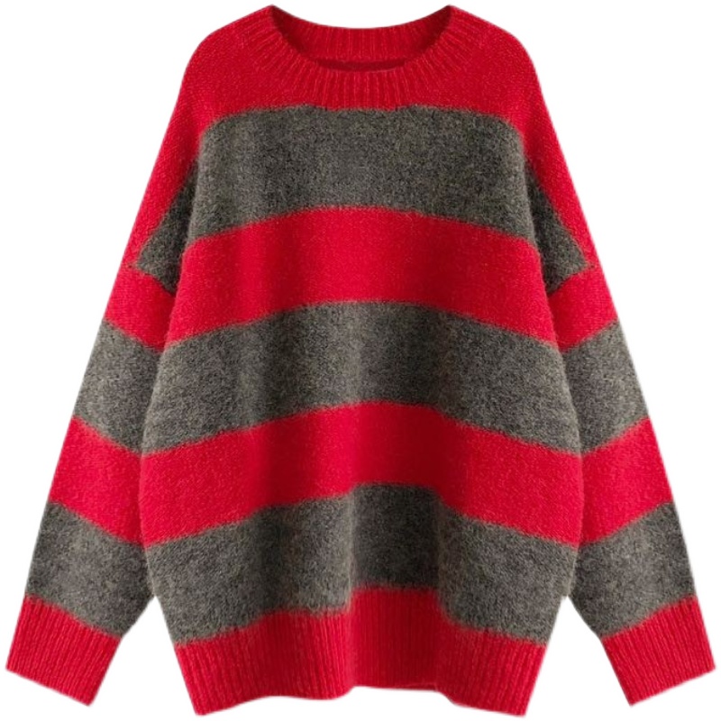 2021 autumn and winter new simple color contrast striped sweater women's large version lazy wind loose student all-match knitted top