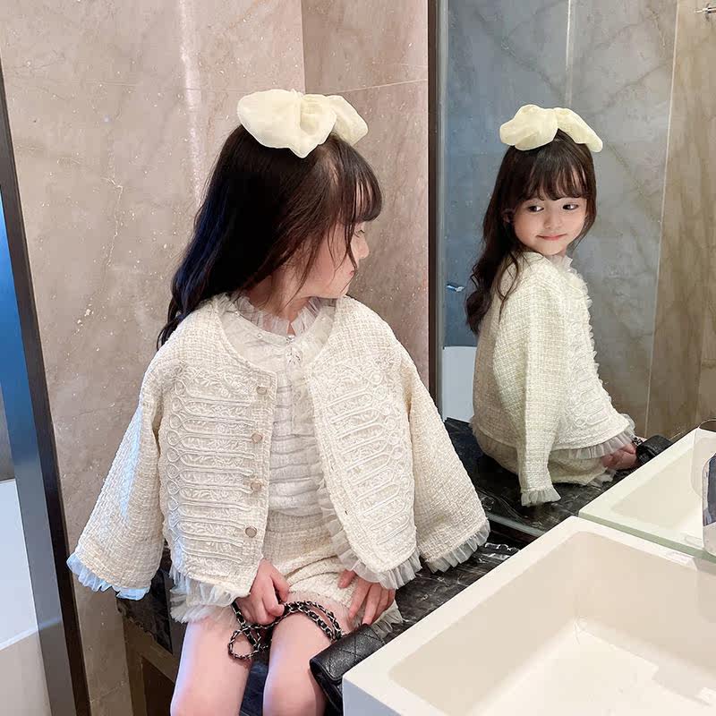 Girls suit autumn 2022 new Western style lace small fragrance jacket shorts children's baby fashionable two-piece suit