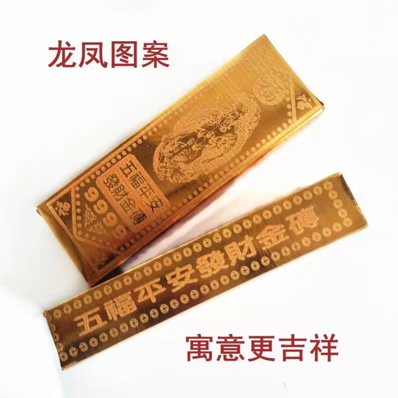 Sacrificial supplies Wufu gold bricks stick-free semi-finished products gold bullion ingots on October 1st to the grave to sweep the tomb anniversary memorial burn