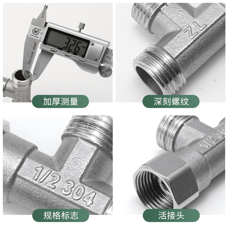 304 stainless steel living joint three-way joint one into two out of 4 points four-point water pipe angle valve water divider internal and external wire shunt