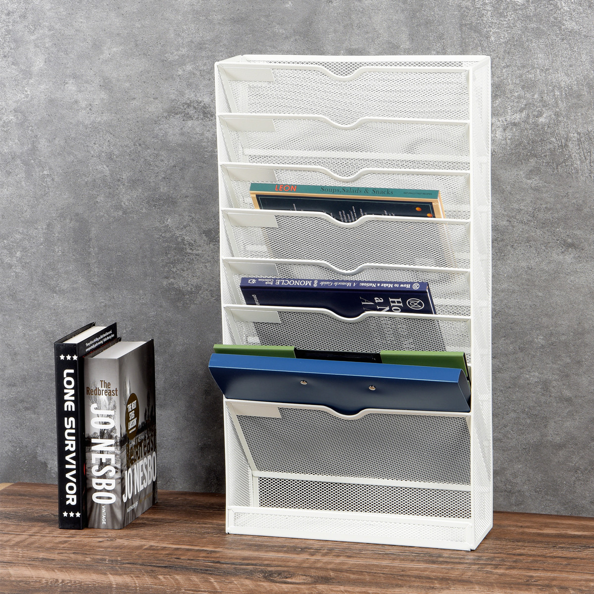 Iron Art Multilayer Magazine Shelf Students Desk Side Containing Theologean desktop A4 File information Classifier wall-hanging-Taobao