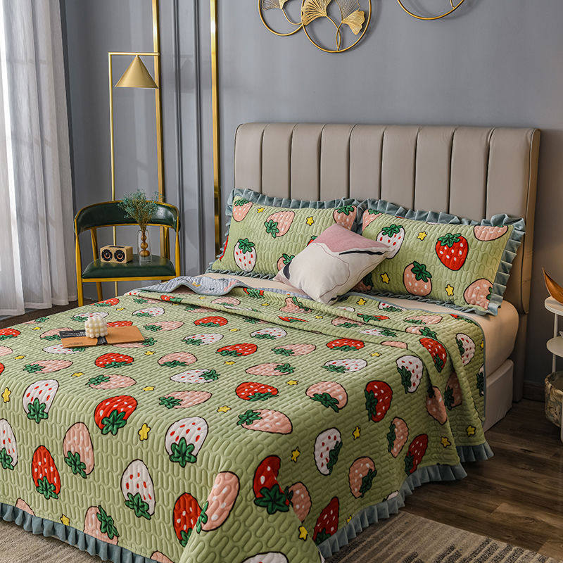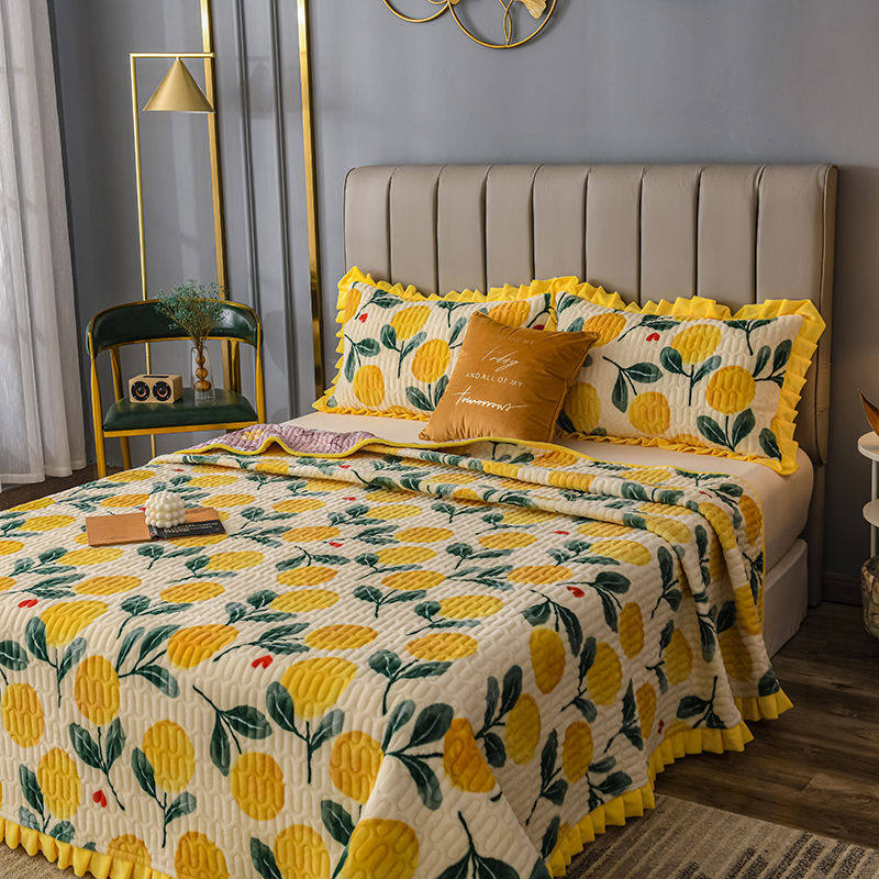 Milk velvet bed cover single-piece double-sided tatami four seasons universal quilted bed sheet three-piece set crystal coral velvet Kang cover