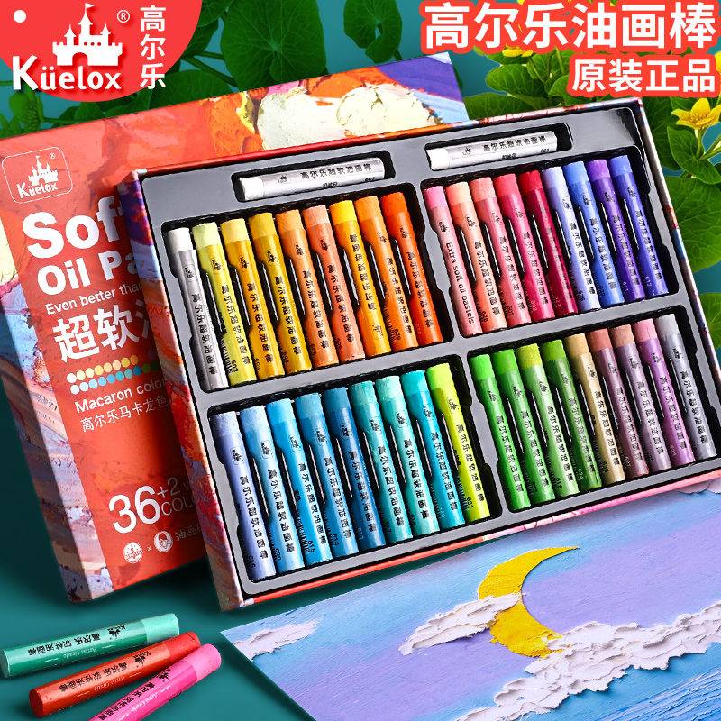Golle oil painting bar heavy color super soft 36 color 24 color soft macaron wax pen suit thick color beginner pupil diy oil color stick paper paintbrush tool Fine arts students special Gola l