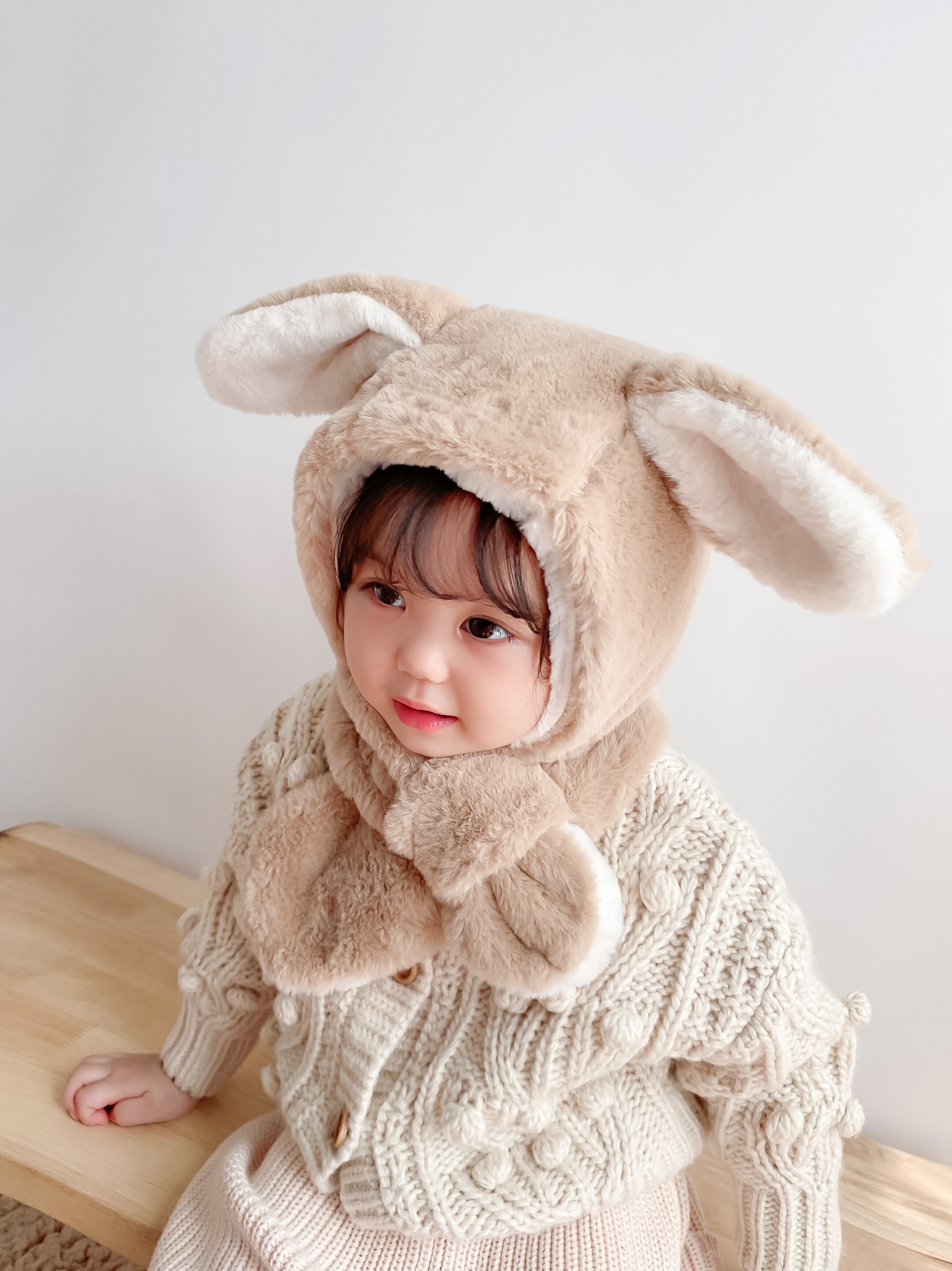 Coral fleece bunny one-piece hat