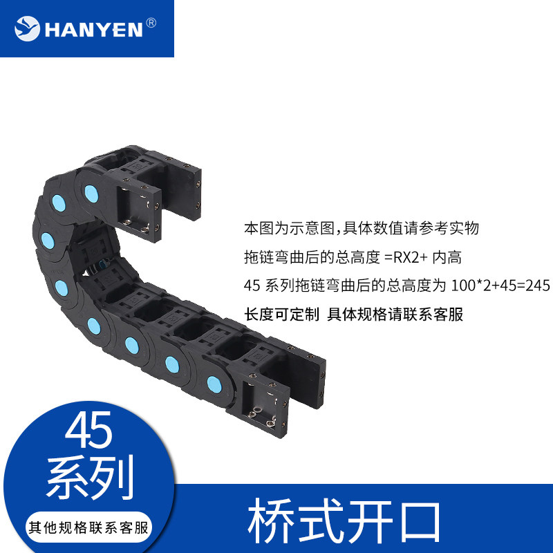 Milky white, off-white, other specifications custom drag chain, please consult customer service 45*50 (bridge opening) 45*65 (bridge opening) 45*75 (bridge opening) 45*100