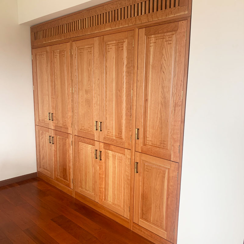 Guangzhou Cherry Wood All-solid log Customized Wine Cabinet Antique Wardrobe Bedroom Overall Furniture Closet Room