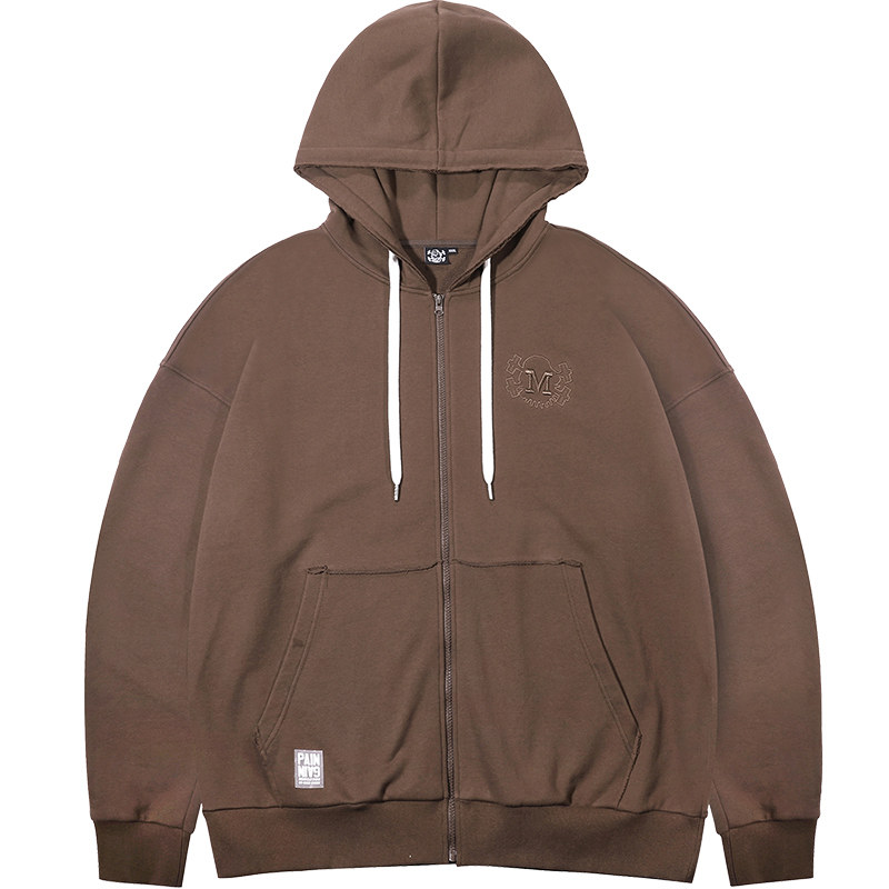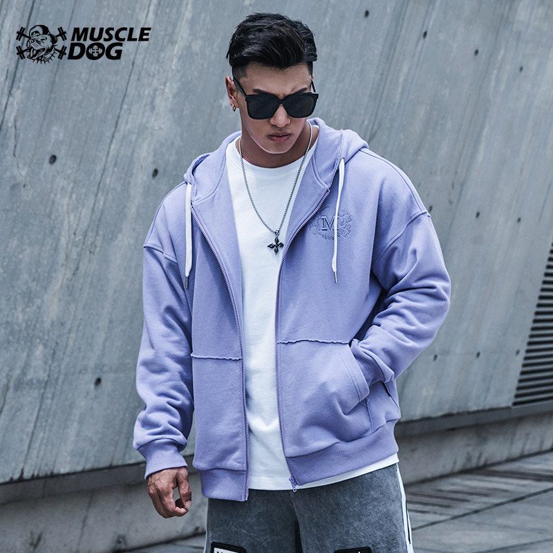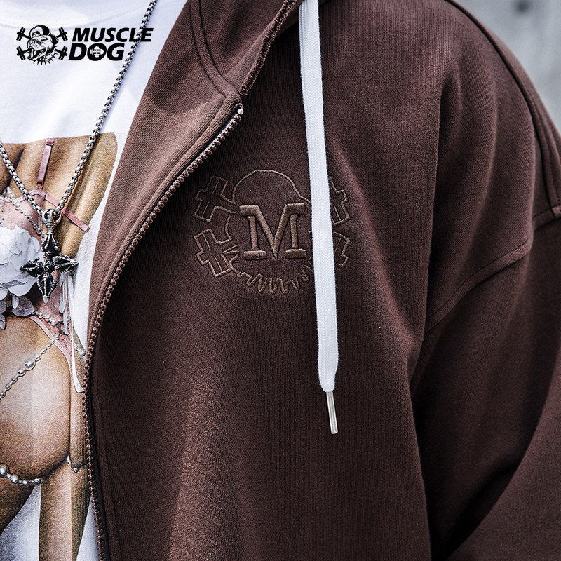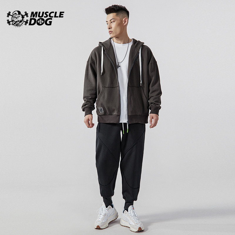 Muscle dog hooded jacket men's trendy brand autumn and winter solid color all-match zipper cardigan sweater loose sports casual jacket