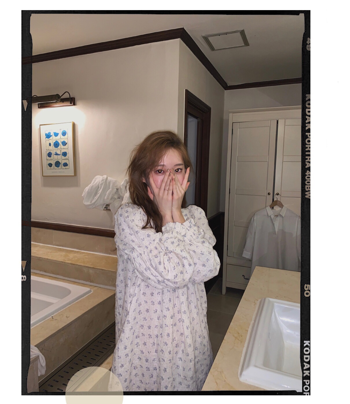 Berries small crushed flowers 100 %cottton pure cotton Home Long sleeves Sleeping Dress ~ Korea Gentle Loose Long Skirt