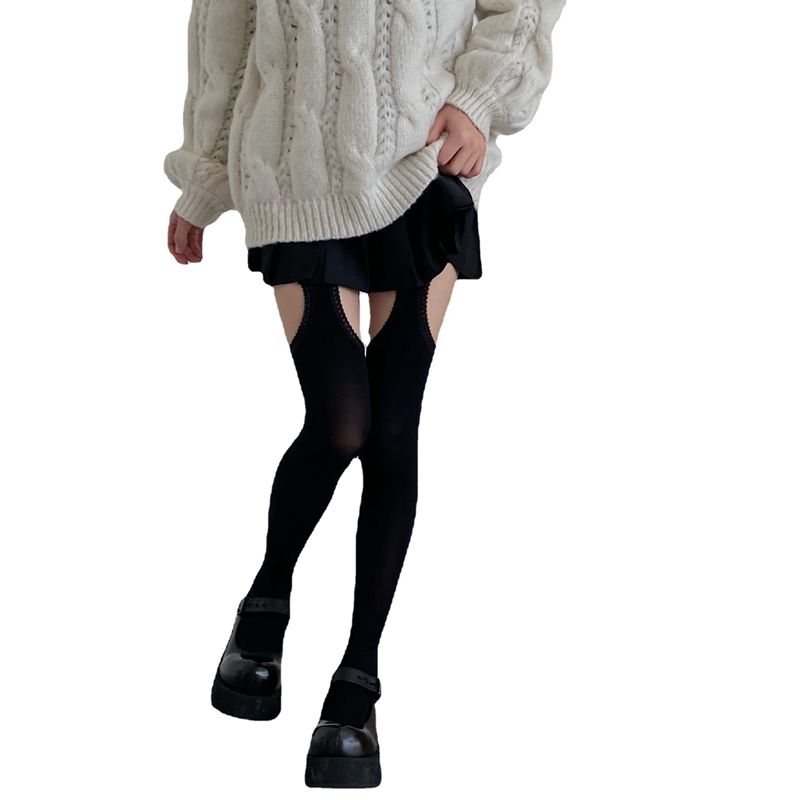 Black sweet cool teenage girl sex velvet sexy pantyhose dress with holes on both sides of the same thighs and fake harnesses to beat bottom socks-Taobao
