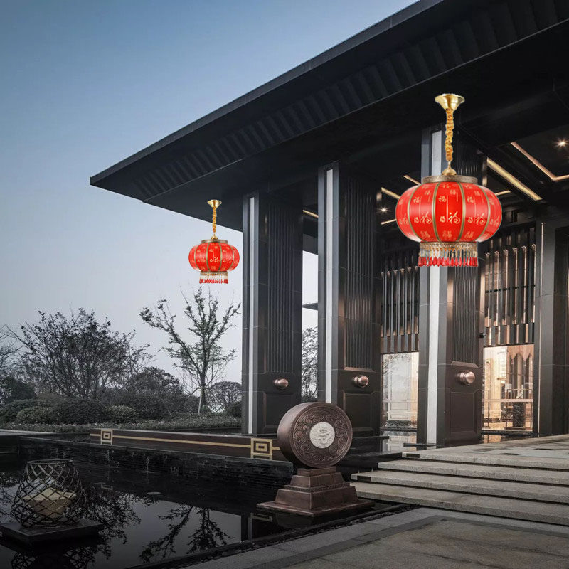 Festive All-bronze Lantern Outdoor Villa Gate Waterproof Glass Luminous Jo Relocation Wedding Balcony Mid Autumn Lantern Hanging Decoration